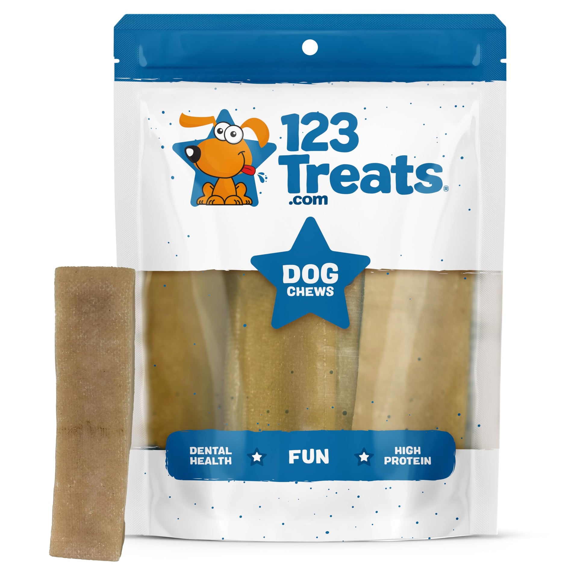 123 Treats Yak Cheese Dog Chews – 100% Natural Long Lasting Chew for Aggressive Chewers, Odor-Free, High Protein & Dental Cleaning Dog Treat, Yak Chews for Over 4 Months Dogs | (Large, 4 Pack)