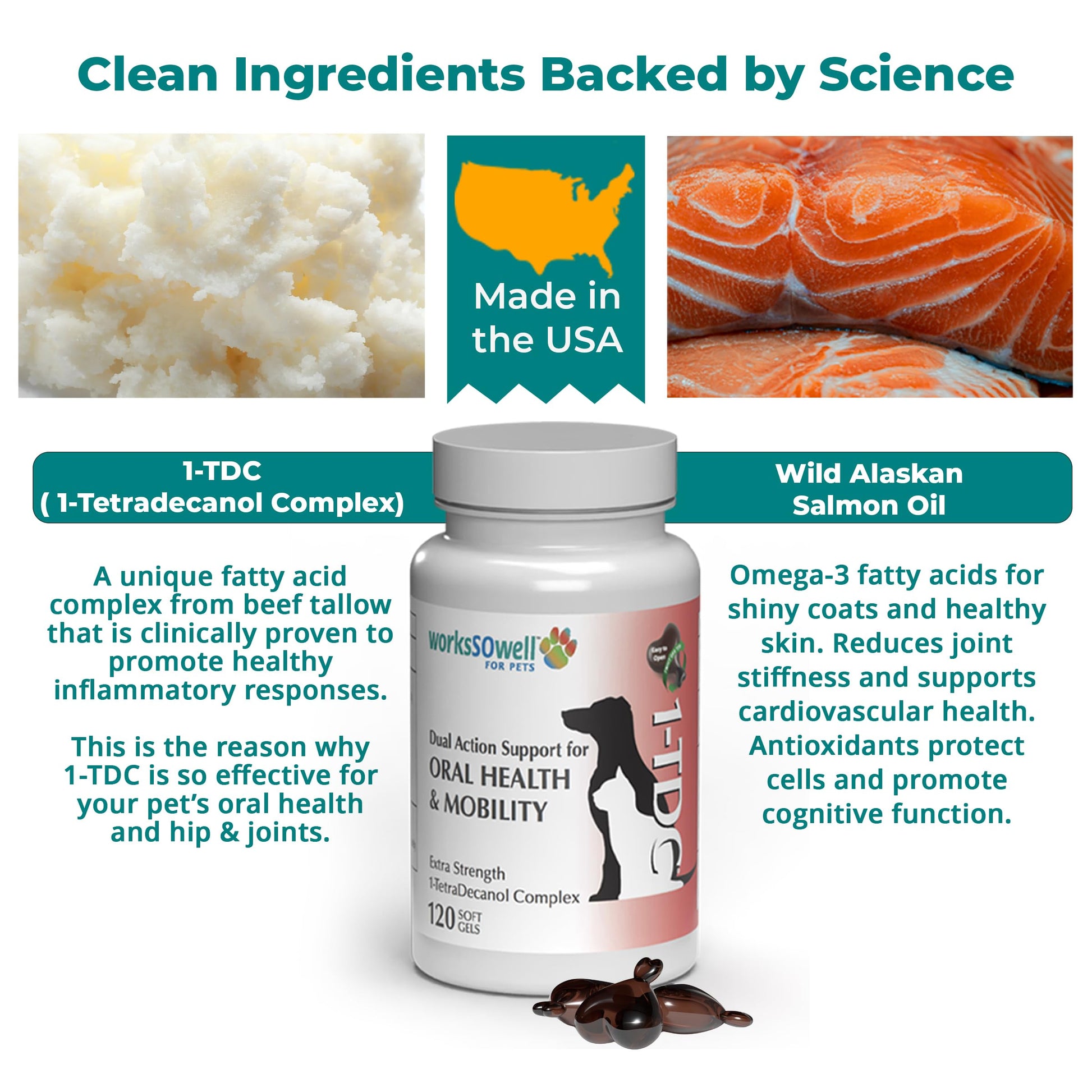 1TDC WorksSoWell Dual Action Joint Supplement for Dogs & Cats - Hip and Joint Supplement for Large Breed & Small Breed - Also Great for Oral Health - Muscle & Stamina Recovery & Arthritis - 120ct