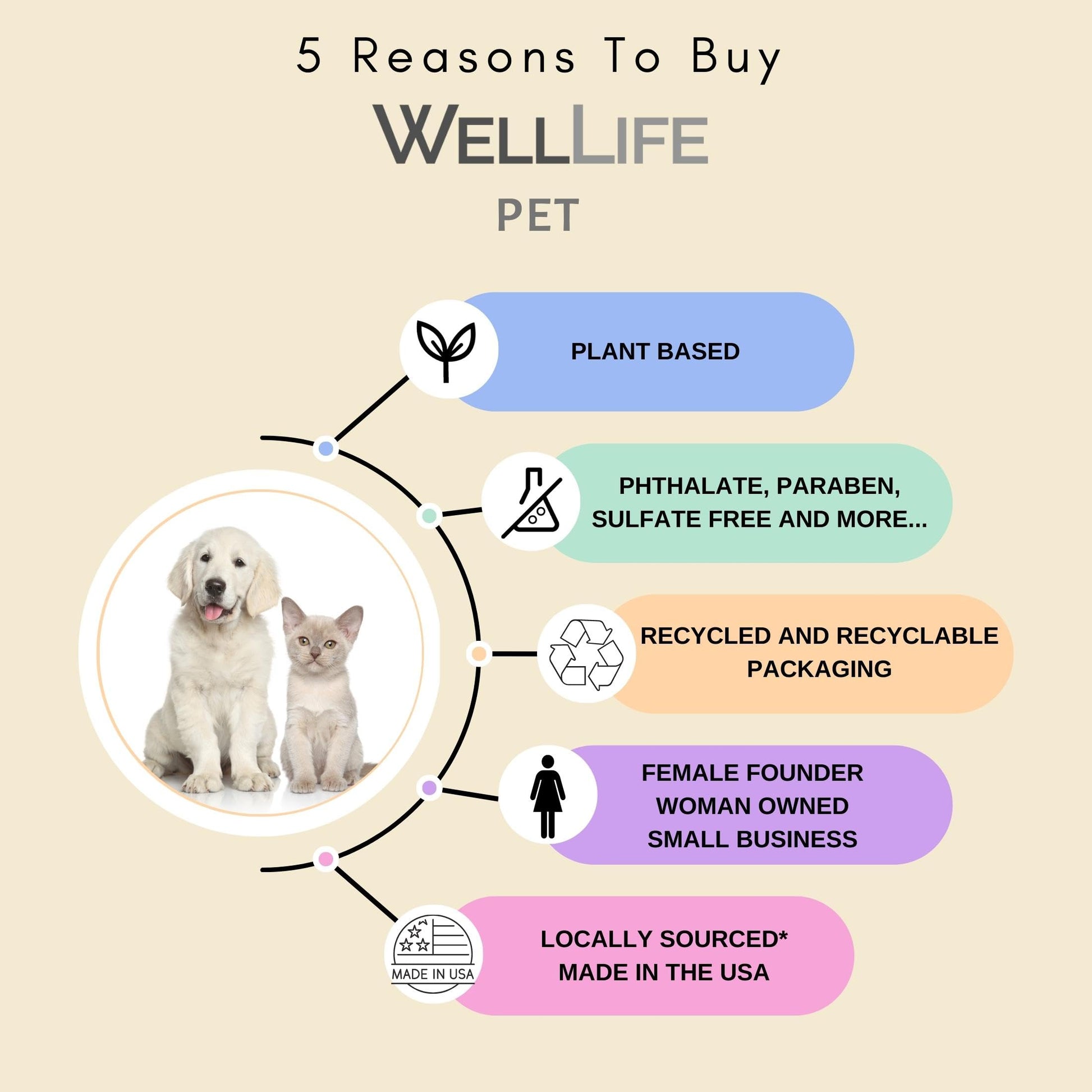Introducing the Well Life 2 in 1 Puppy Dog Shampoo and Conditioner, the perfect solution for dogs with itchy skin allergies. With our high-quality pet shampoo and conditioner, you can provide your furry friend with a spa treatment right at home. Our conditioning pet shampoo is specially formulated to address dry and itchy skin, making it the best choice for dogs and puppies with allergies. The plant-based cleaning ingredients gently cleanse your pet's coat while soothing any irritation. Enriched with jojoba oil, our shampoo moisturizes the skin and coat, leaving it healthy and shiny. Not only does our dog shampoo and conditioner effectively clean and condition, but it also rinses clean, ensuring there is no residue left behind. This makes it suitable for frequent baths without drying out your dog's skin. Whether you have a puppy or a senior dog, our shampoo is suitable for all ages and all skin types. Say goodbye to smelly dog shampoo odors with our tearless formula. The gentle yet effective formula ensures that bath time is a breeze for both you and your pet. Our dog shampoo and conditioner is hypoallergenic, making it safe for dogs with sensitive skin or allergies. With the Well Life Dog Shampoo and Conditioner, you can give your furry companion a shiny coat and a spa-like experience. Our all-in-one shampoo and conditioner is the best choice for dogs with itchy skin and provides a clean and gentle grooming session. Your dog deserves the best, so choose the Well Life Dog Shampoo and Conditioner for a happy and healthy pet.