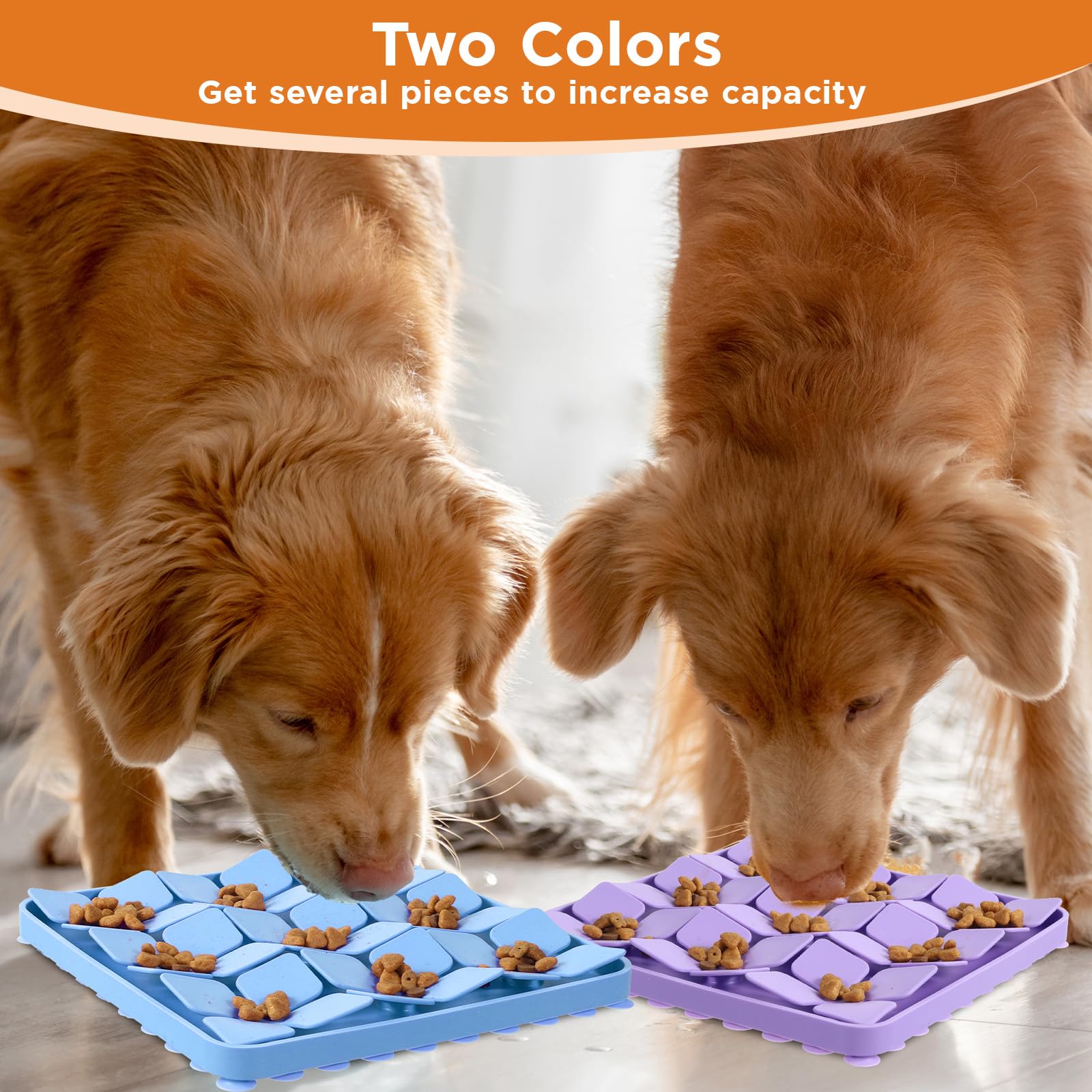 Multi-Pet Ready: The 8x8 inch size and durable silicone build make this Snuffle Mat suitable as a Multi-Pet Slow Feeder for small and medium dogs, cats, or rabbits. Supplied as a convenient 2-pack (Blue & Purple), it allows for rotation during cleaning, use in multiple locations, or accommodating multiple pets simultaneously, offering extended value and flexibility