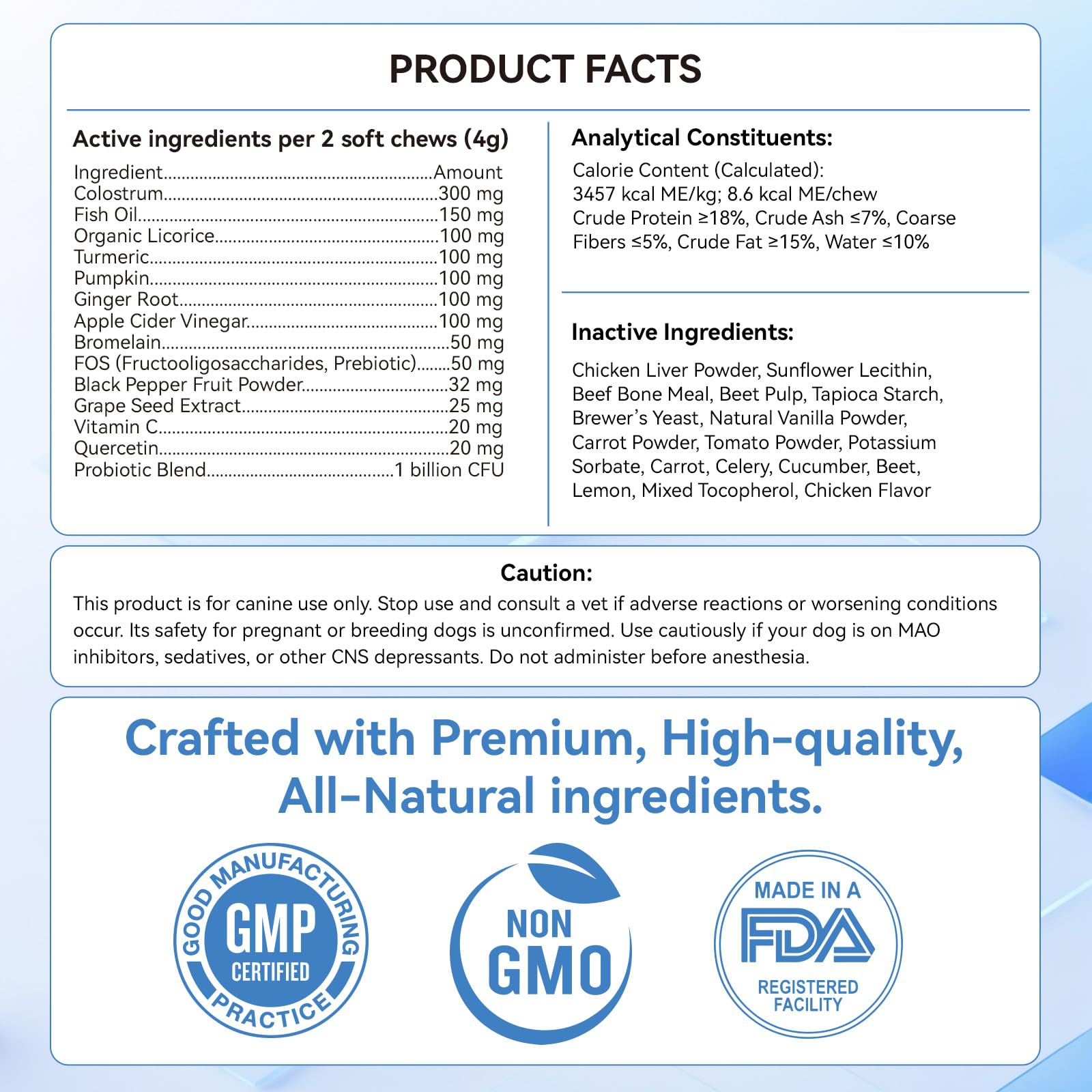 • Powerful Immune Support & Skin Health: Packed with Omega-3 fish oil, colostrum, and probiotics, these allergy chews for dogs support a healthy immune system, maintain a balanced gut, and improve skin and coat health. They help to strengthen your dog's defenses against allergens and reduce inflammation, supporting a shiny, itch-free coat.