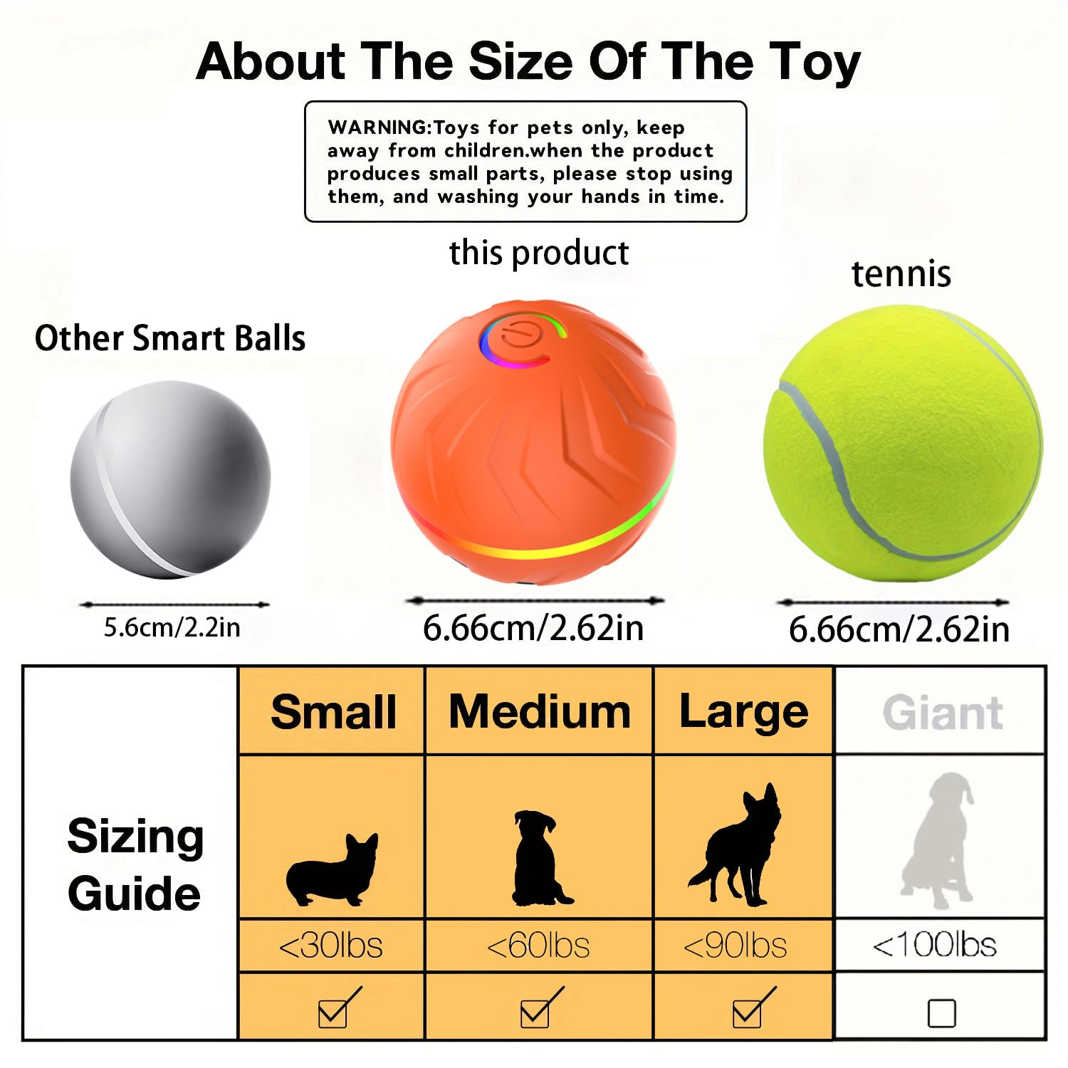 • USB Rechargeable for Long-Lasting Play: This interactive dog ball charges in just 1.5 hours and provides up to 3 hours of continuous play. Automatically enters standby after 5 minutes of inactivity. Easily reactivated by touch or by pressing the button—no disposable batteries needed