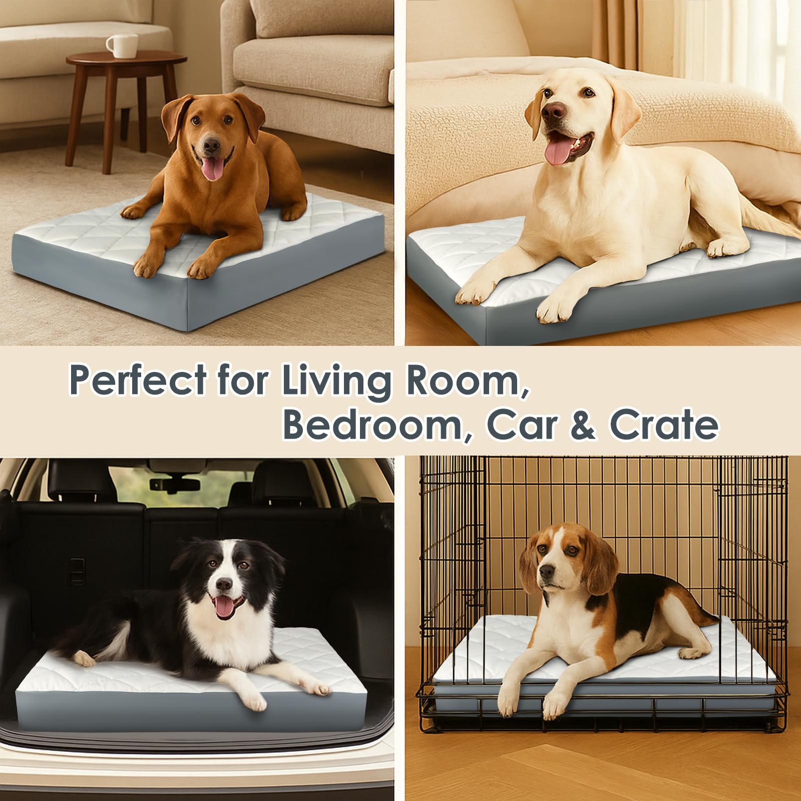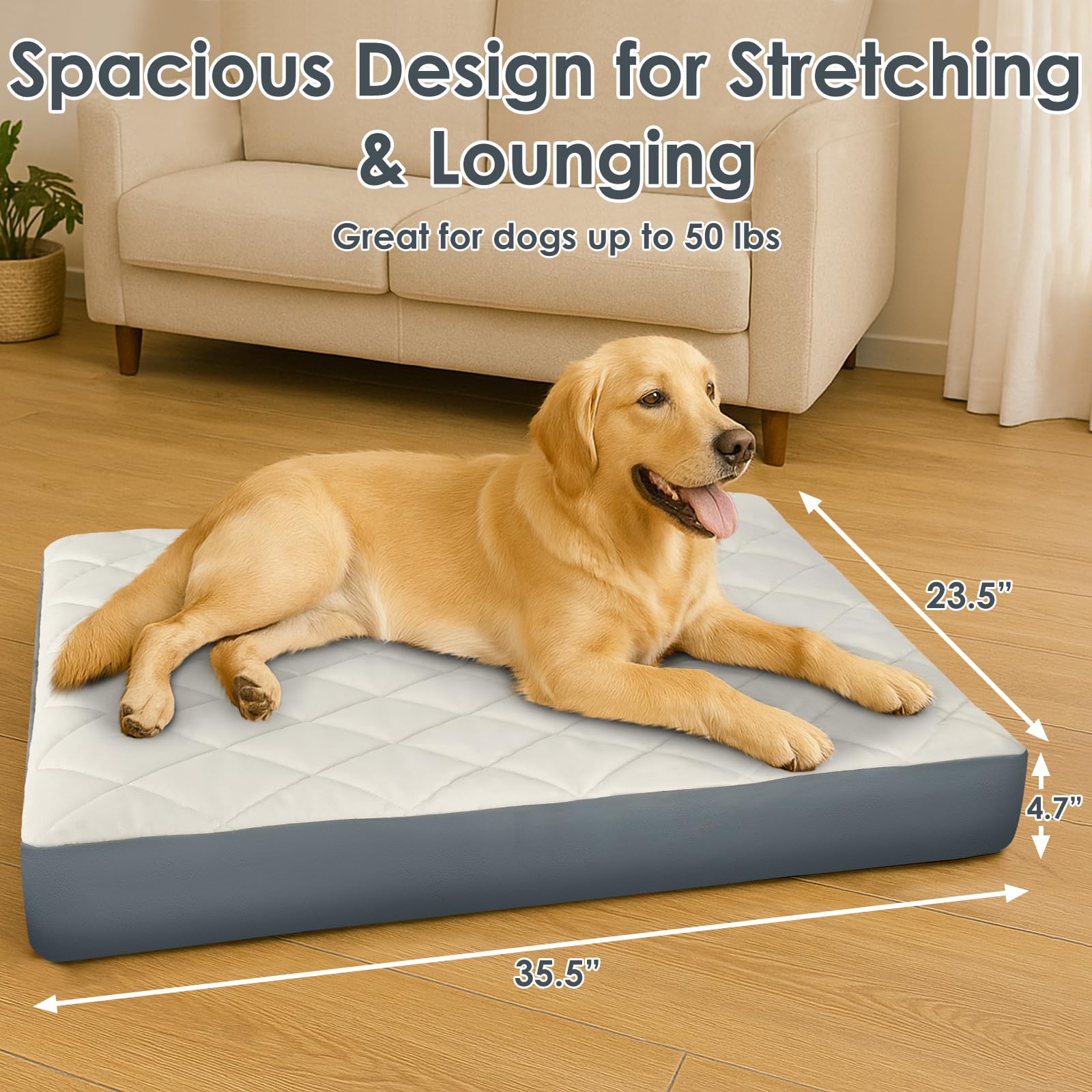 35.5" x 23.5" x 4.7" Large Orthopedic Dog Beds, Water-Resistant Faux Leather Memory Foam Dog Bed, Egg Crate Foam Support & Non-Slip Bottom Pet Beds for Medium Dogs and Large Dogs, Easy to Clean