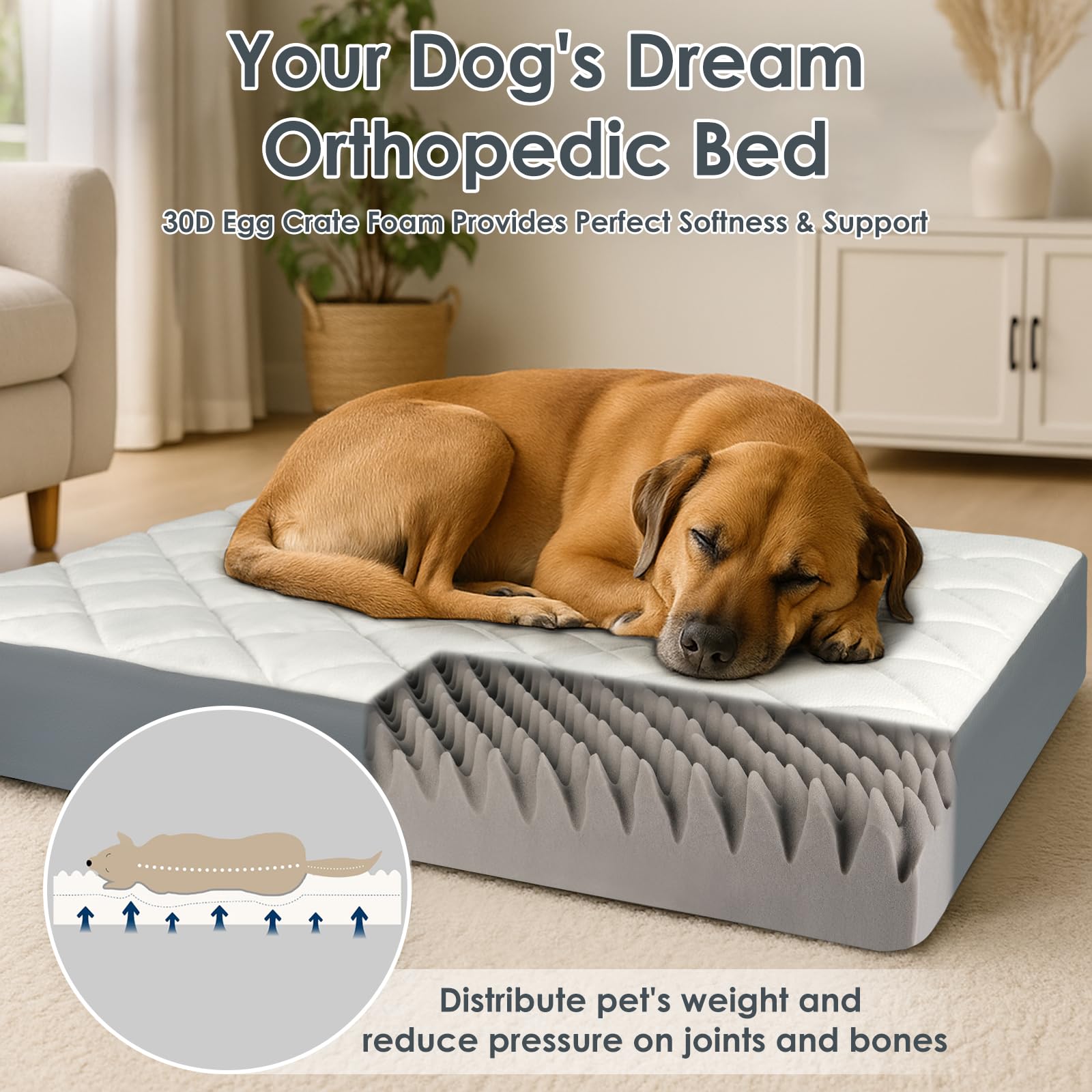 - Balanced Softness & Support with 30D Egg Crate Foam: Our dog orthopedic bed is filled with high-density egg crate memory foam to strike the perfect balance between softness and firm support. This helps to distribute weight evenly, providing the perfect amount of pressure relief and joint support.
