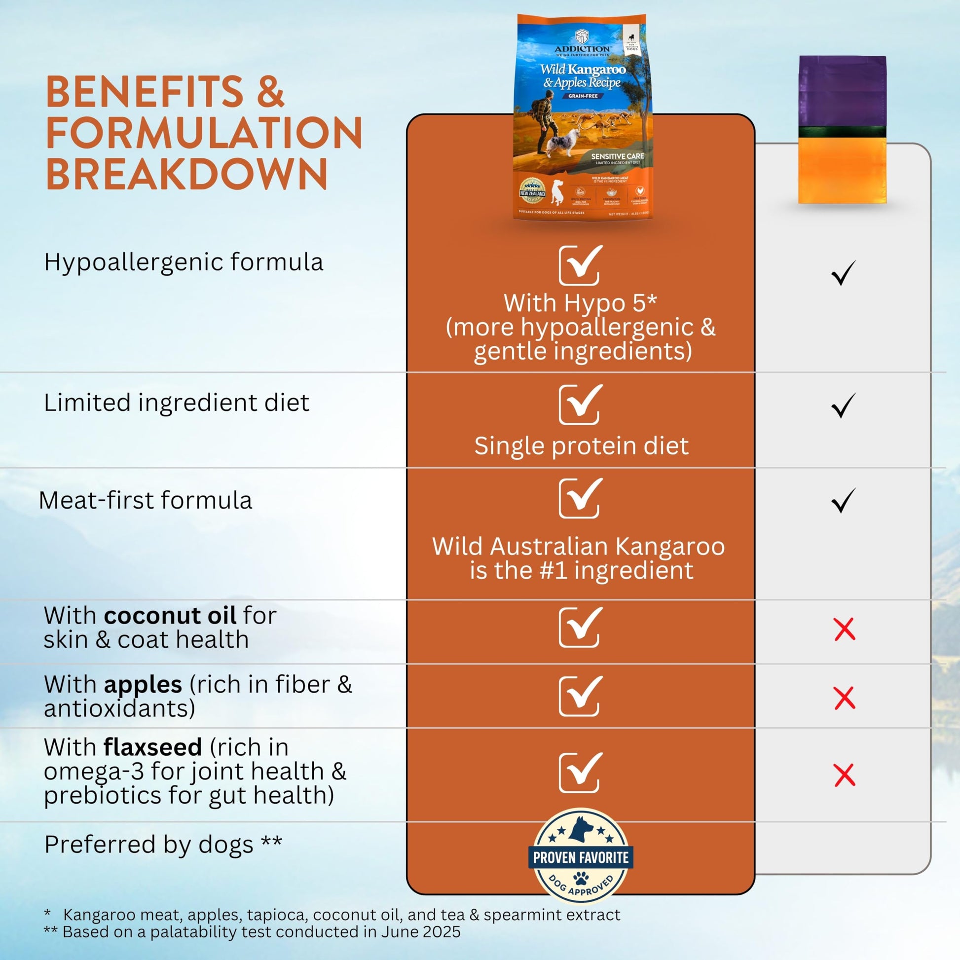 - WILD KANGAROO MEAT IS #1 INGREDIENT - Novel protein dog food. Lean and low in cholesterol and fat. With conjugated linoleic acid for weight management, maintaining muscle mass, and overall health.