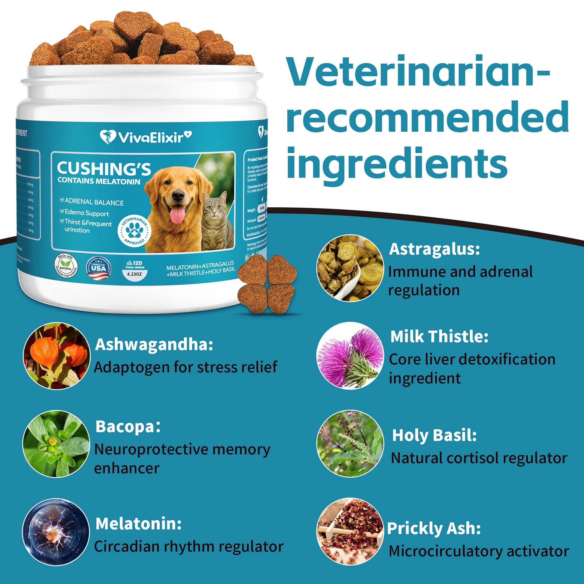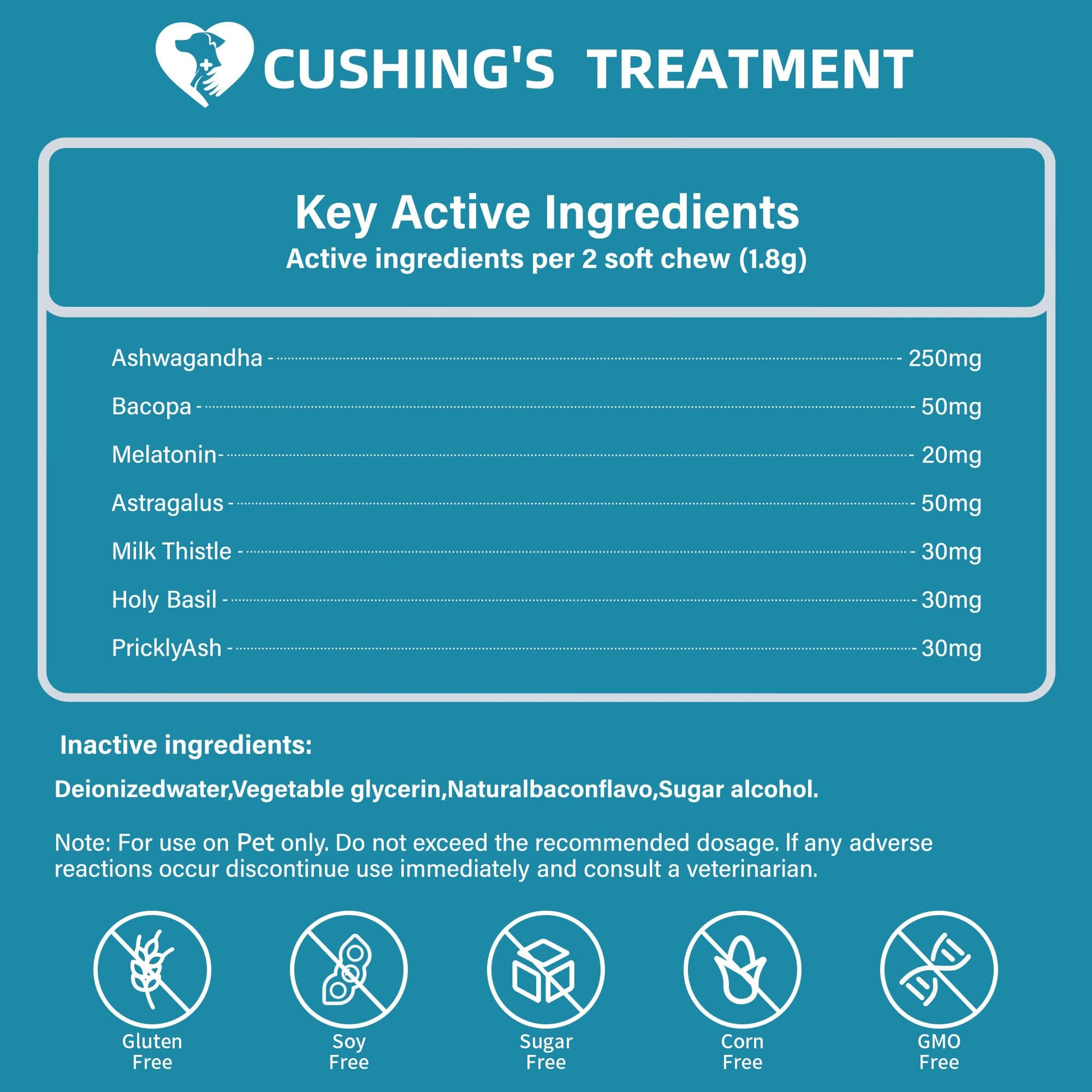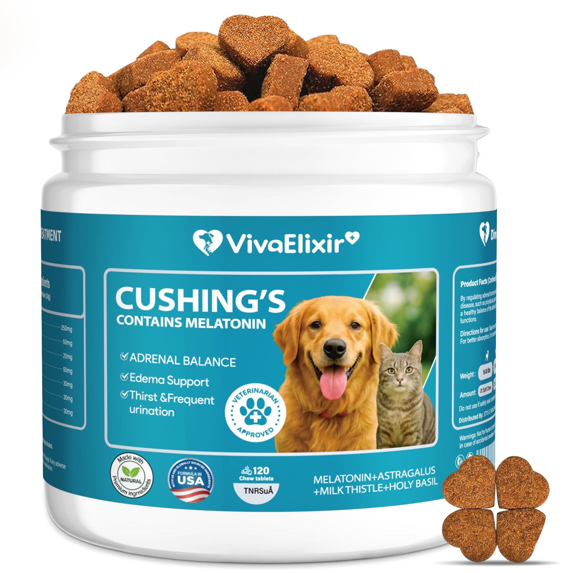 Cushing's Disease Relief Support – Formulated with melatonin and herbal ingredients, this supplement helps alleviate excessive thirst, frequent urination, and decreased energy associated with Cushing's disease, promoting daily vitality in dogs.