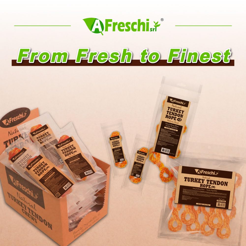AFreschi Turkey Tendon Rope (M) 3.17 oz, USA-Sourced Turkey Tendon, All Natural Human Grade Dog Chew, Hypoallergenic, Rawhide Alternative, Dog Treats for Medium Breeds