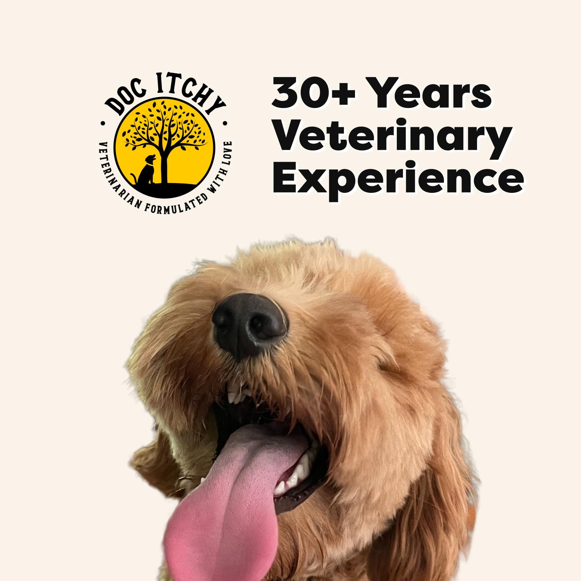 • 30 YEARS OF EXPERTISE FOR YOUR DOG: A USA Veterinary Dermatologist with 30+ yrs of Allergy & Dermatology experience, Doc Itchy makes the first & only high-dose, nonprescription medical pet supplements