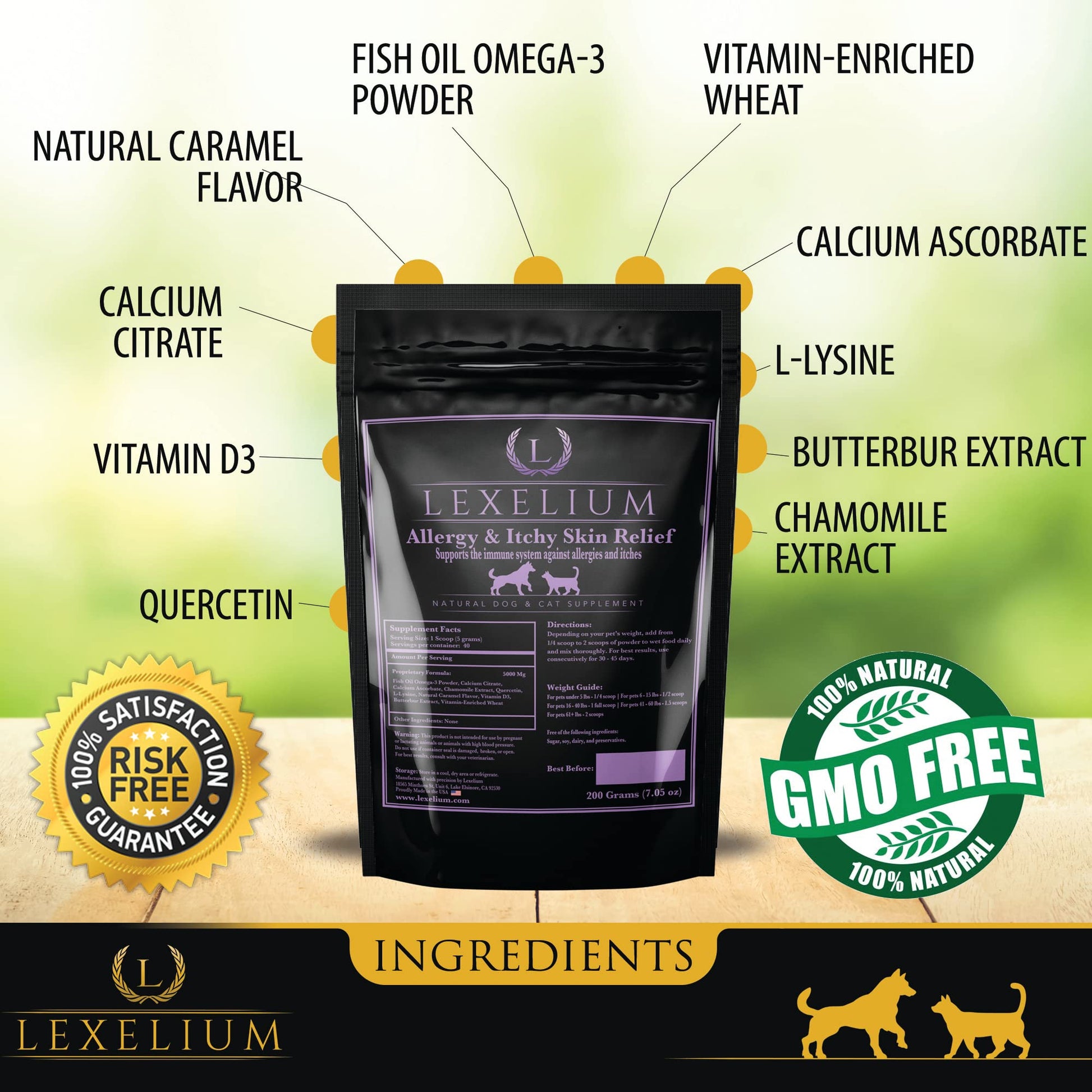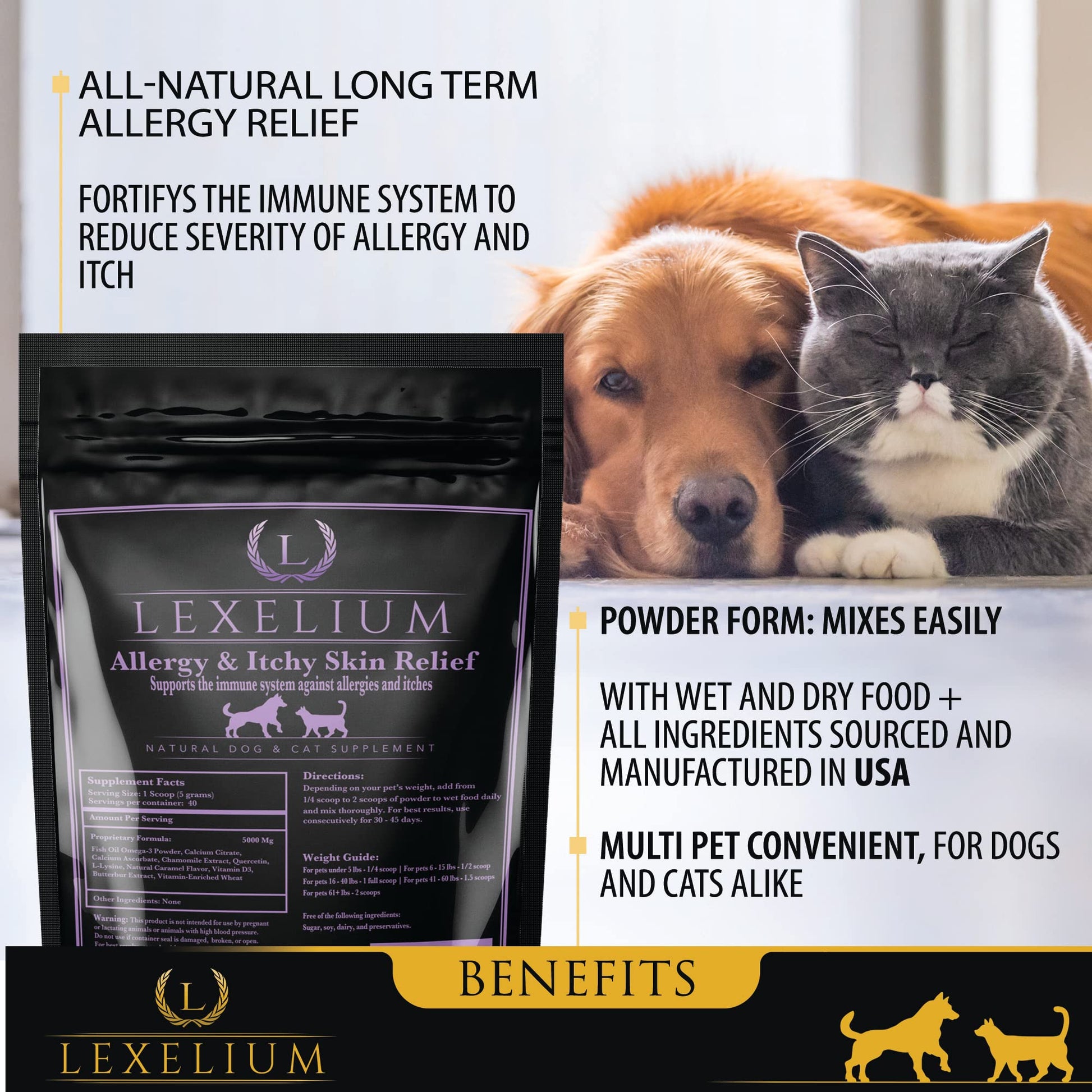 Veterinarian Designed Long-Term Relief - Lexelium’s Allergy and Itch Relief is designed to reduce both severity and frequency of common allergy symptoms such as dry skin, itching, and minor skin discomfort