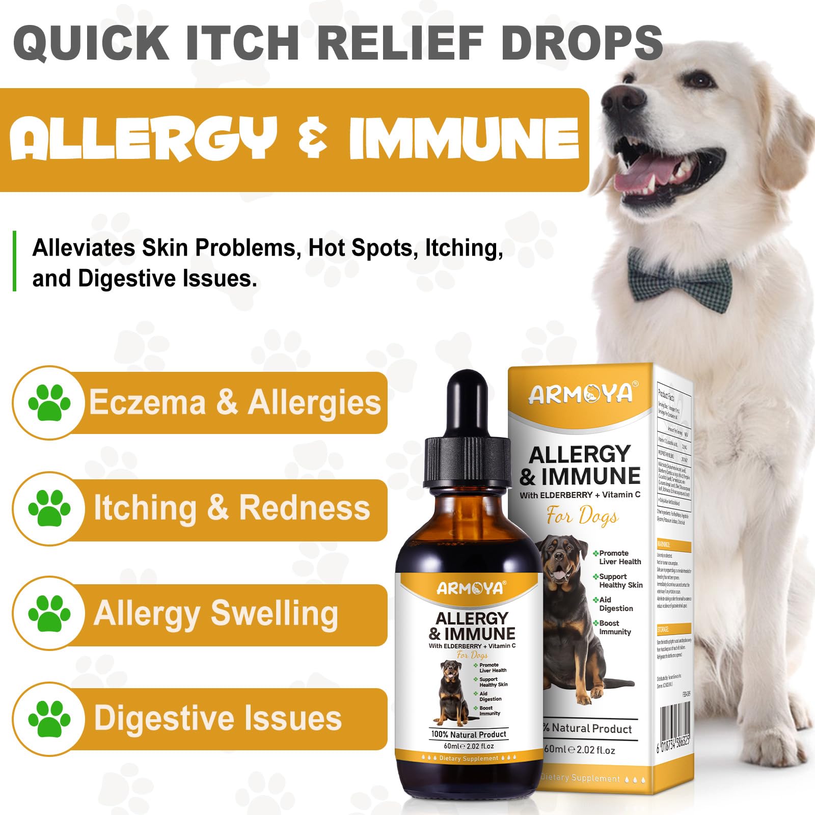 • Overall Wellness: Our ARMOYA Allergy & Immune is a dietary supplement solution for immune and digestive support that enhances your pet’s overall health and vitality with a balanced blend of ingredients for dogs and cats with skin, seasonal and environmental allergy issues