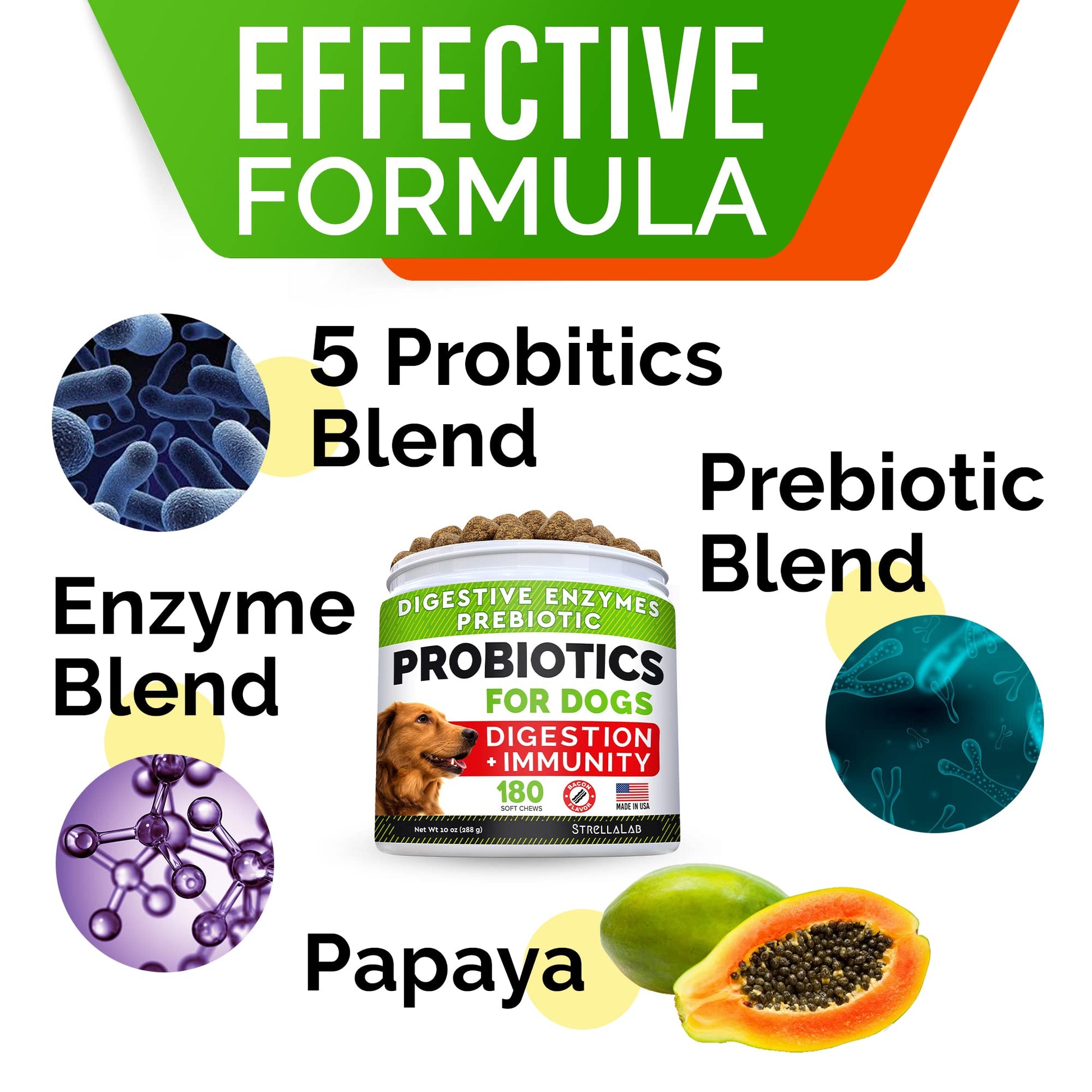 • ✅ Support Healthy Tummy - packed with all essential probiotic and prebiotic, fiber and enzymes, these probiotic chews for dogs will help easy varios stomach issues like gas, diareah, sensitive or upset stomach, constapation, gas, acid, loose stool, bad breath etc.