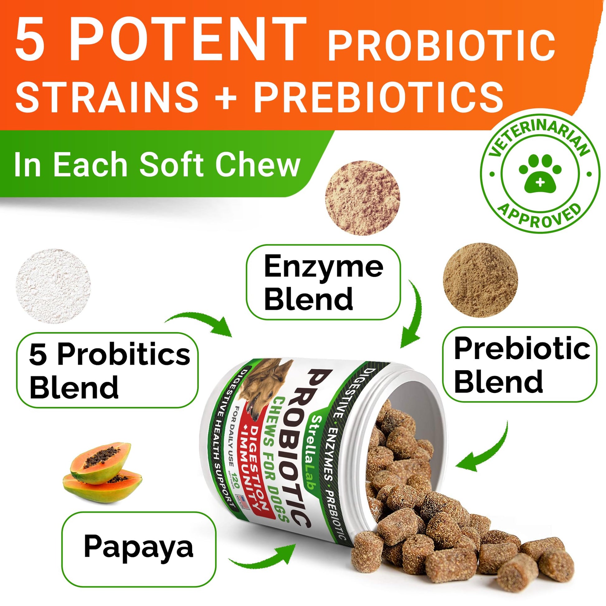 • ✅ Support Healthy Tummy – packed with all essential probiotic and prebiotic, fiber and enzymes, these probiotic chews for dogs will help ease various stomach issues like gas, diarrhea, sensitive or upset stomach, constipation, gas, acid, loose stool.
