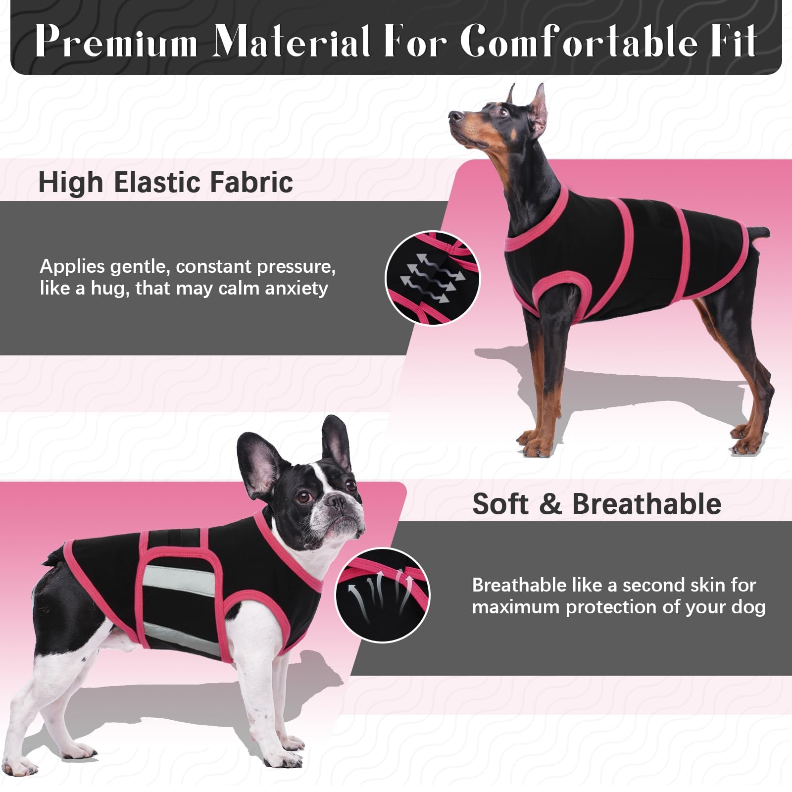 Allroaring Dog Anxiety Vest, Soft Dog Calming Shirt, Reflective Anti-Anxiety Vest Breathable Pet Anxiety Jacket Wrap for Fireworks, Thunderstorms, Separation, Travle, Vet Visits, Black L