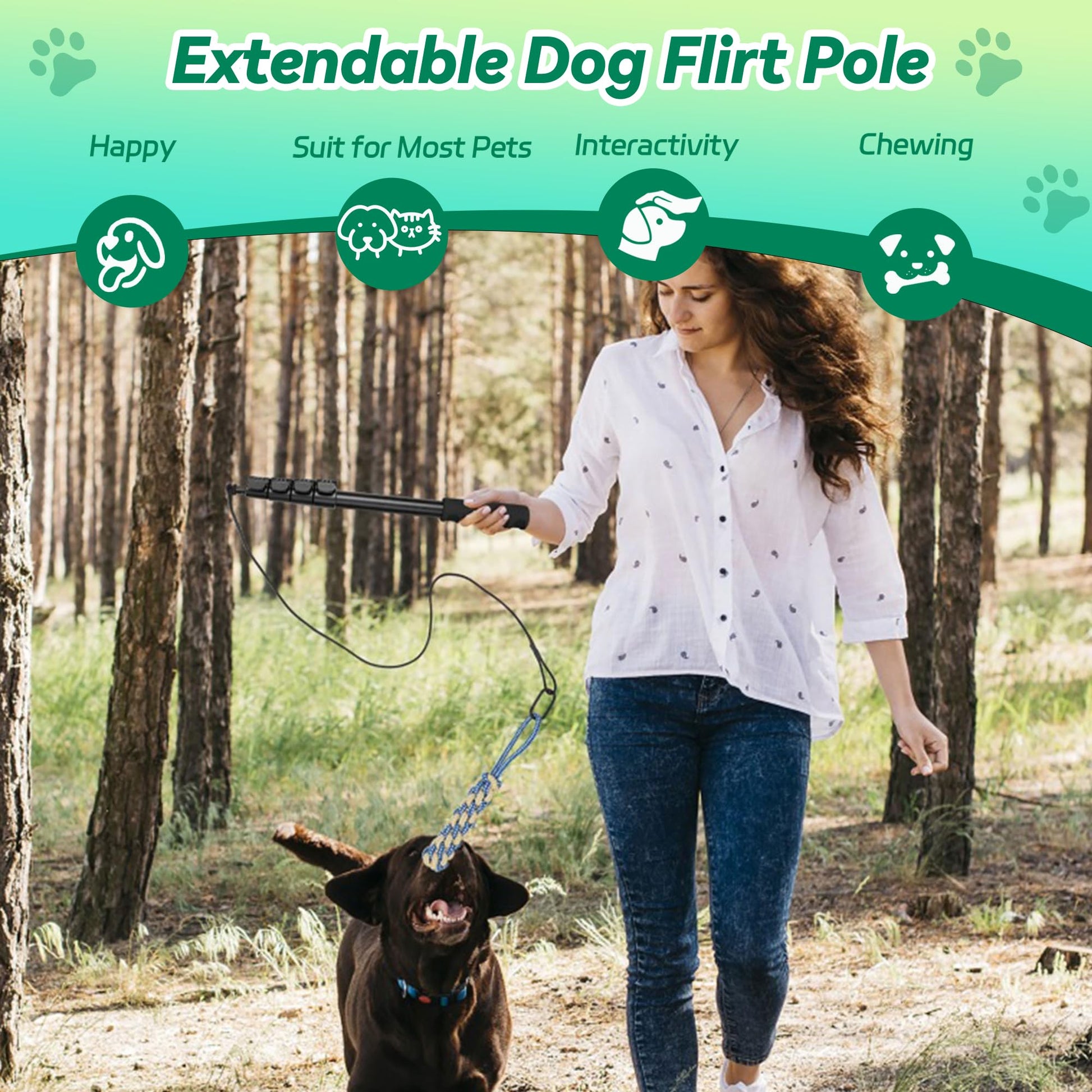 AmaCielo Flirt Pole for Dogs, Interactive Toys Tug-of-war for Dogs, Five-Section Retractable Adjustable Length,for Outdoor Exercise & Training for Small Medium Large Dogs