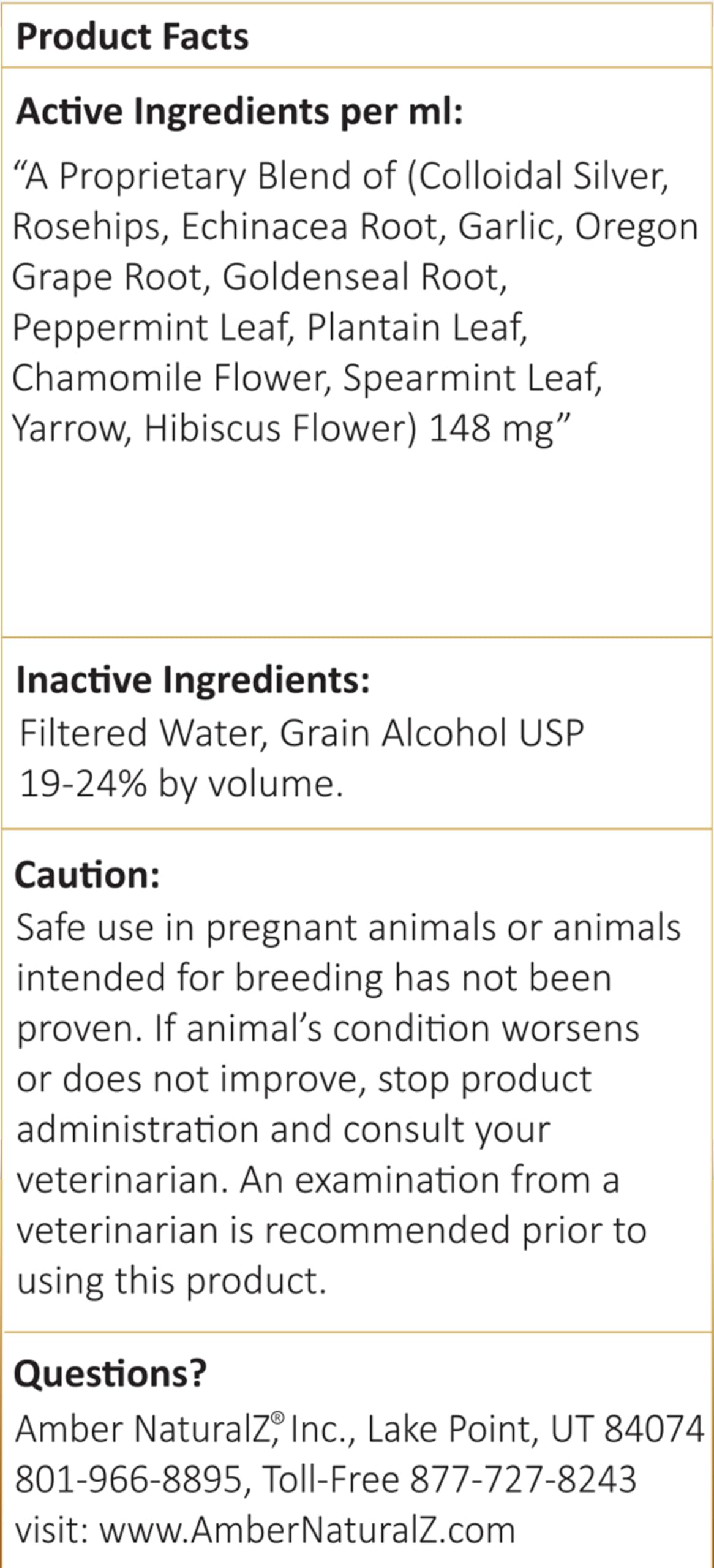 • Herbal Blend Product: Amber NaturalZ Paxaid is globally sourced and manufactured in the USA containing our proprietary blend of organic and wildcrafted herbs. These include Colloidal Silver, Rosehips, Echinacea Root, Garlic, Oregon Grape Root, Goldenseal Root, Peppermint Leaf, Plantain Leaf, Chamomile Flower, Spearmint Leaf, Yarrow, and Hibiscus Flower.