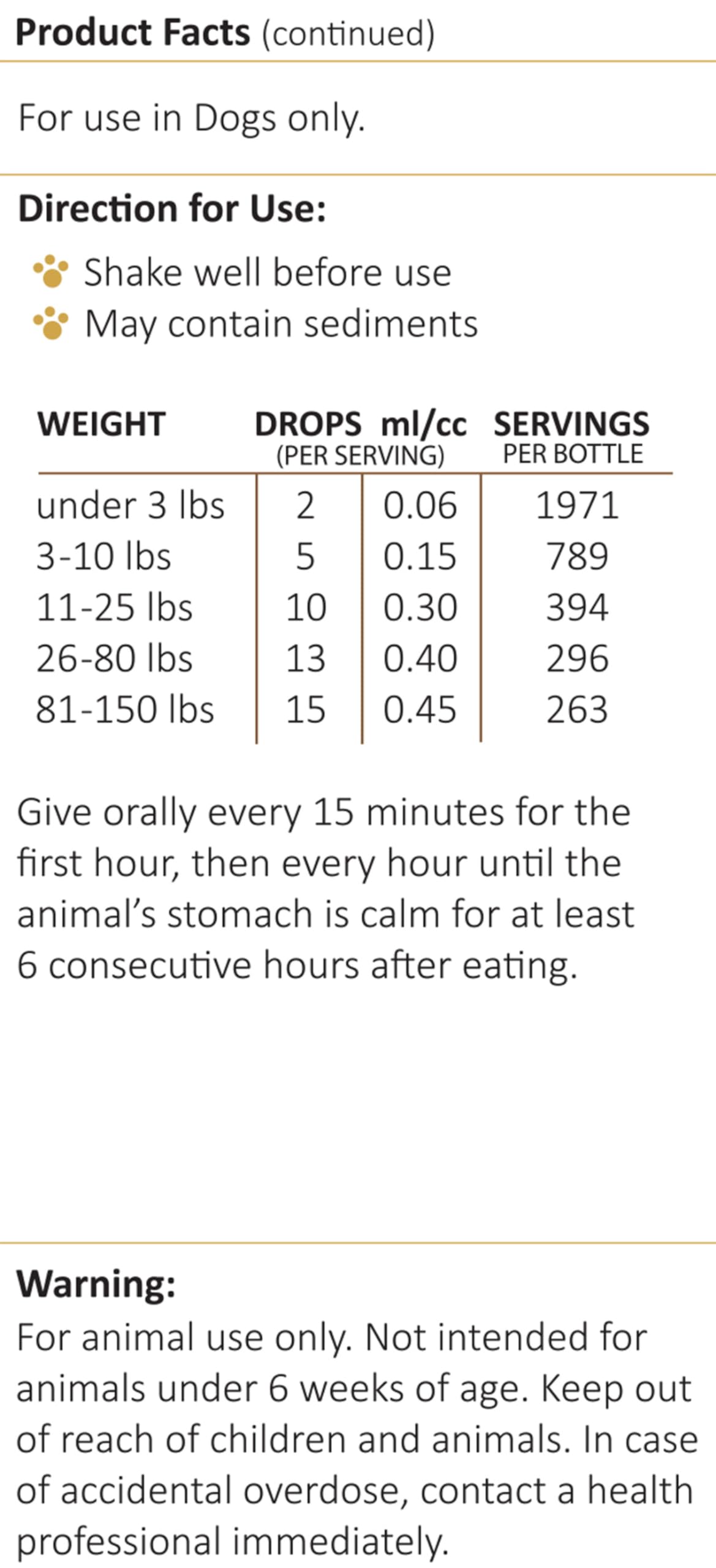 • Safe Glass Bottle: Plastics can cause harmful toxins and chemicals to leach into herbal extracts. Paxaid Digestive Rescue for Dogs is safely bottled in one (4oz) sterile amber glass bottle and includes a convenient dropper tool for easy administration along with easy-to-follow instructions.