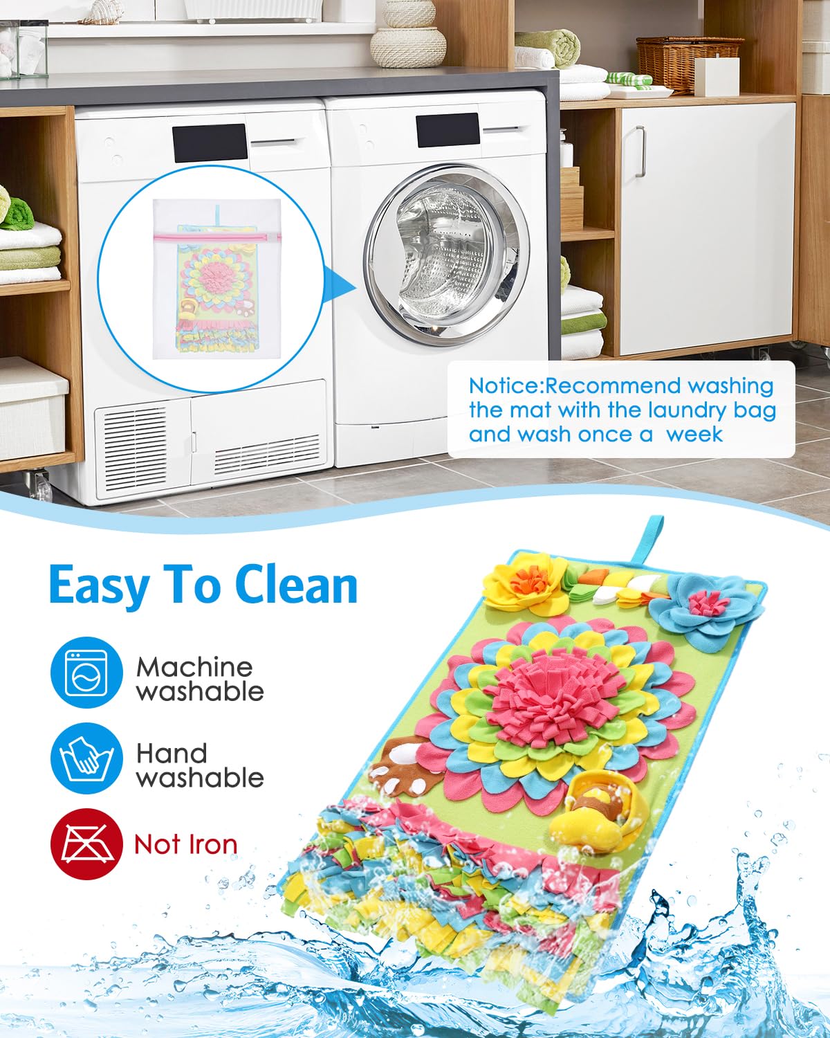 • 【Pet-Safe Snuffle Mat for Dogs】Made from high-quality felt and soft polar wool, this dog snuffle mat is safe for pets. The anti-slip bottom keeps the mat securely in place, preventing dogs from moving or flipping it during play or feeding time