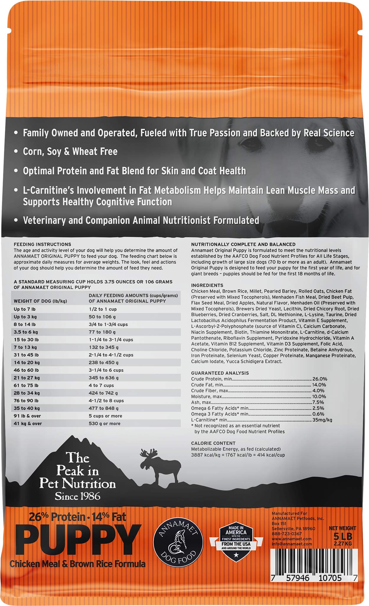 Annamaet Original Puppy Dry Dog Food, (Chicken & Brown Rice), 5-lb Bag