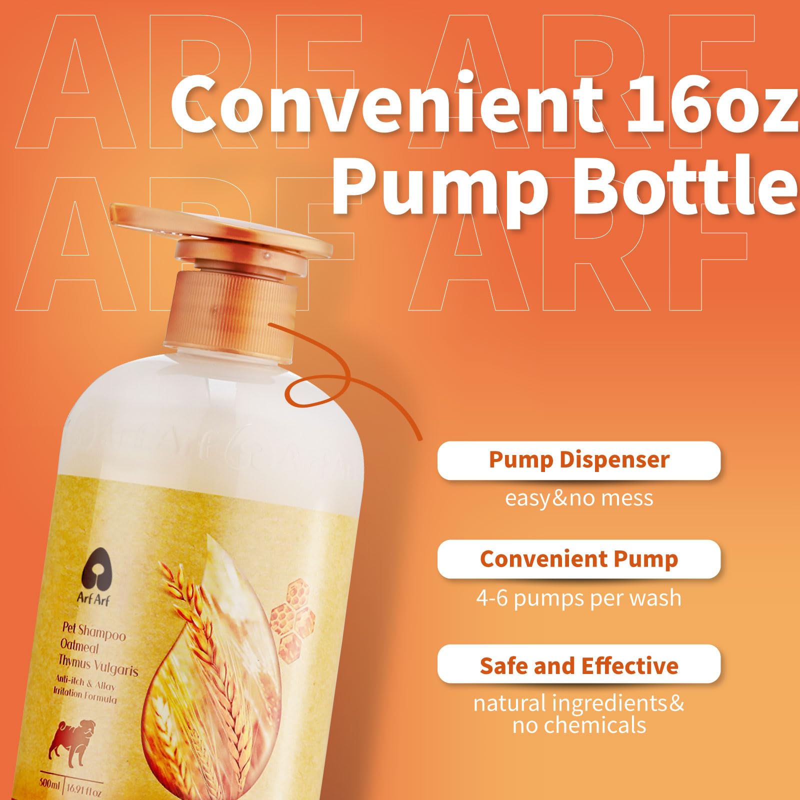 Arf Arf Oatmeal Dog Shampoo for Itchy Skin and Allergies - Soothing Oatmeal Formula Provides Anti Itch Relief for Dry, Sensitive Skin - Hypoallergenic Calming Wash for All Breeds - 16oz