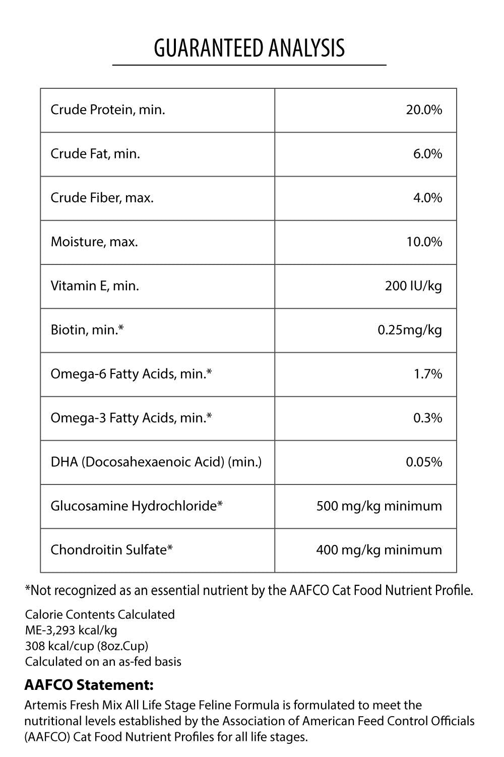 - HIGH-QUALITY INGREDIENTS - All of Artemis's premium diets are formulated with the highest quality ingredients to meet AAFCO requirements and to increase your pet’s longevity and quality of life. Cats thrive on a diet rich in proteins and fats, from an array of meats. Fresh mix includes multiple 6 fresh meat protein: chicken, turkey, duck, and salmon; it also features concentrated chicken and fish meal. Fresh Mix has optimal protein levels for all stages of your pet’s life.