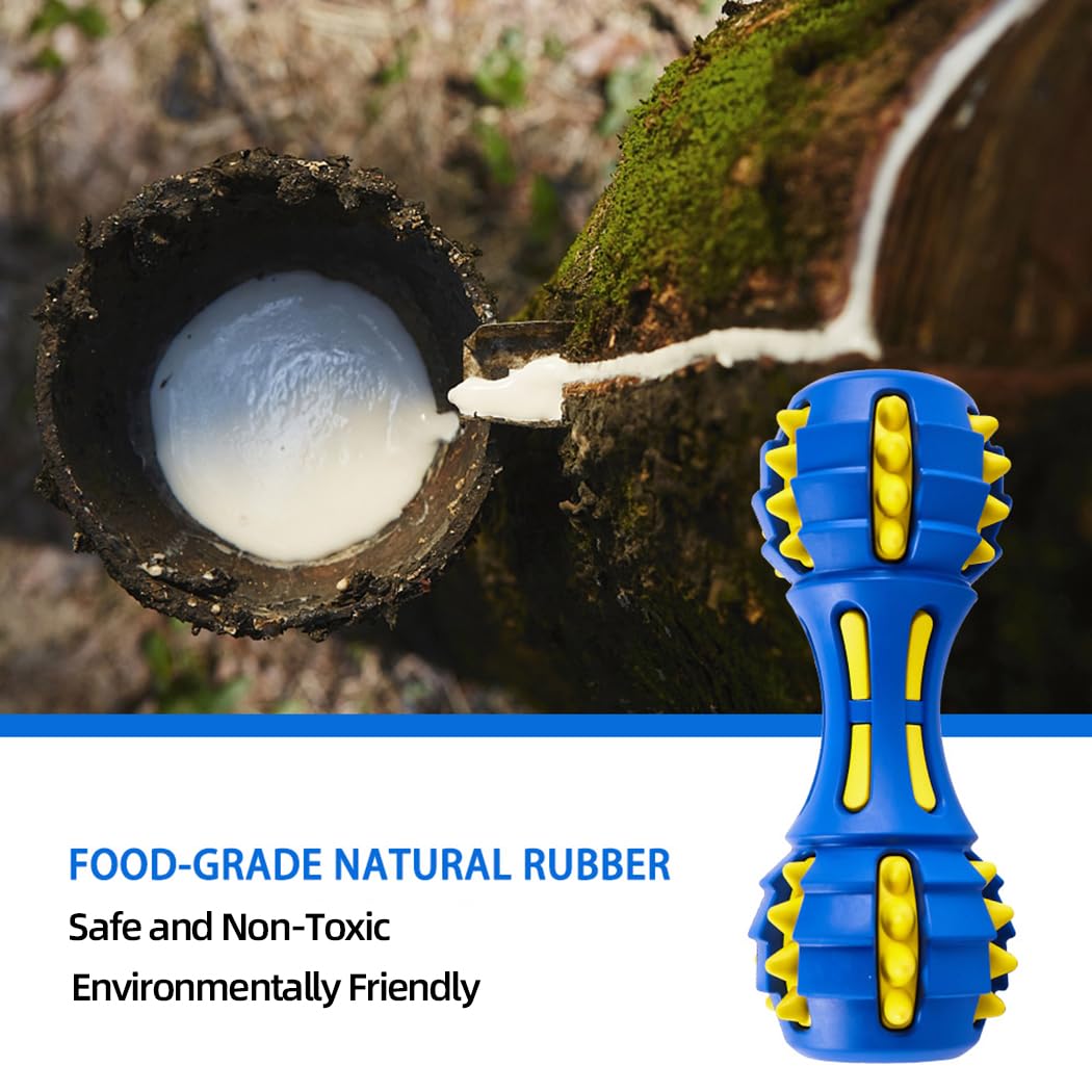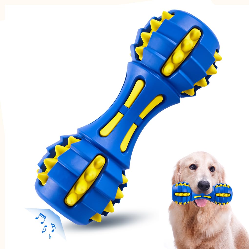 AUSCAT Teething Dog Toys, Durable Squeaky Dog Toys, Rubber Chew Toys for Dogs, Dumbbell Shape, Blue