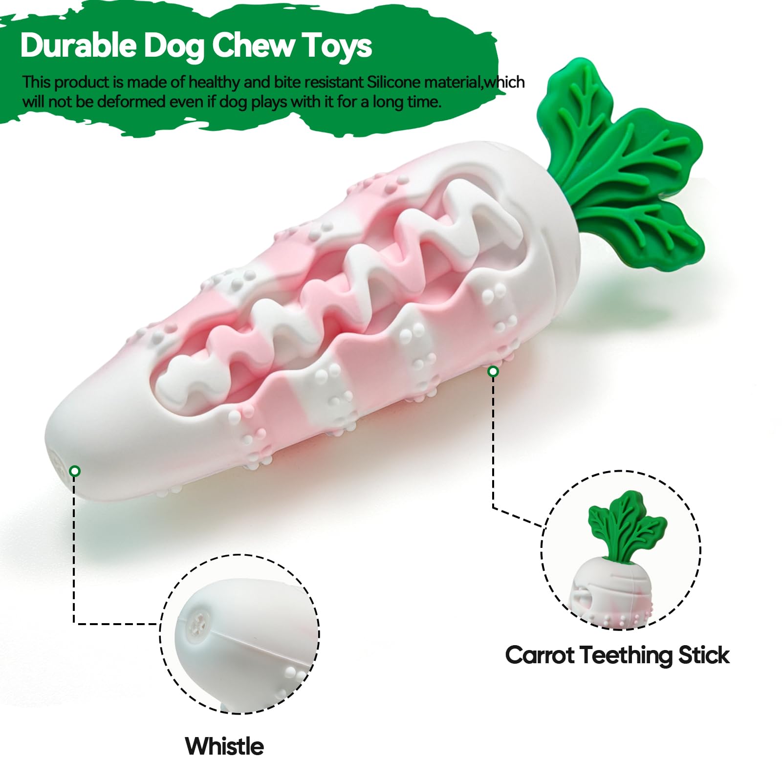 AWINNER Dog Chew Toys for Aggressive Chewers, Indestructible Tough Durable Squeaky Interactive Dog Toys, Puppy Teeth Chew Carrot Stick Toy for Small Medium Large Breed (Mixed Pink)