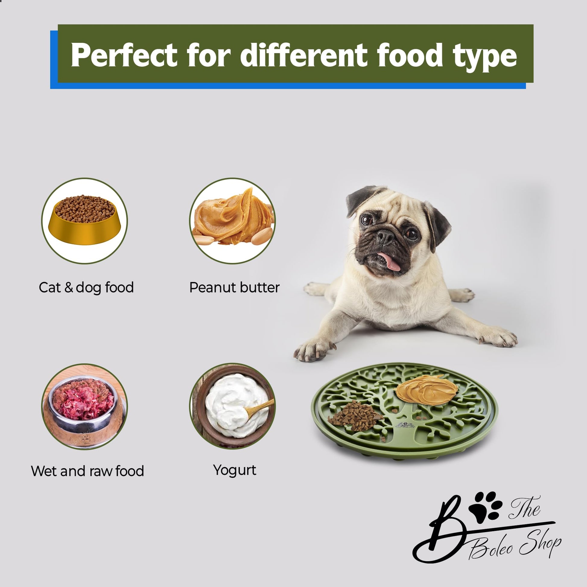 Details: The Boleo Shop lick mat for dogs and cats. Slow feeders for pets. Reduce anxiety
