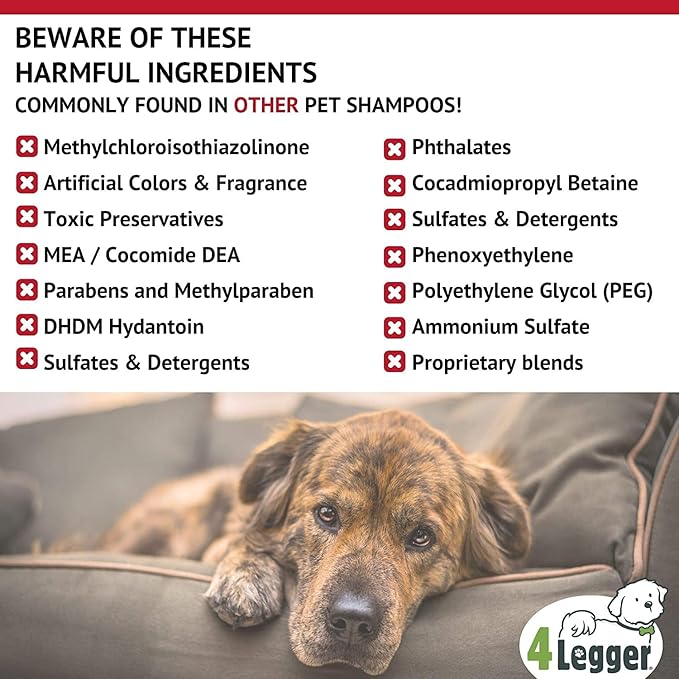 • THE CHOICE FOR ECO-CONSCIOUS PET PARENTS: 4-Legger dog shampoo is made from sustainably sourced, all natural ingredients. Our goal is to help our furry family members live longer lives through natural products, and reduce the environmental impact of toxins in pet grooming products