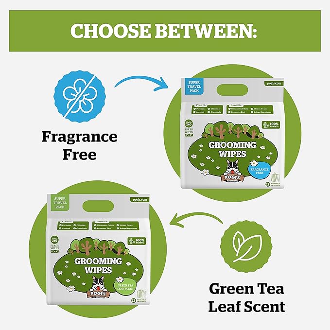 Pogi’s Dog Wipes Travel Packs – Hypoallergenic Pet Wipes for Paws, Body & Butt – Cleaning & Hydrating, Fragrance Free, 240-Count