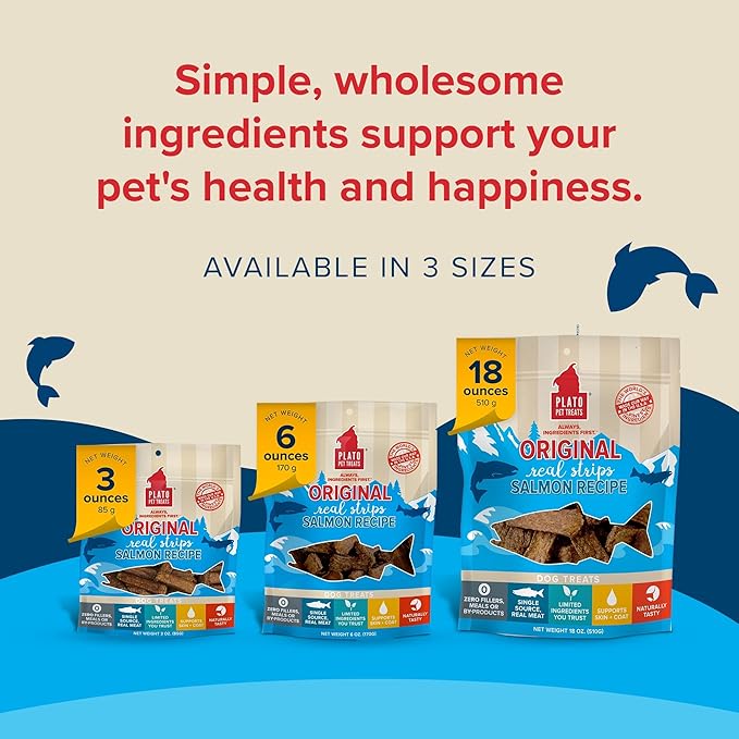 PLATO Original Real Strips Salmon 3oz, Natural (850002221497)