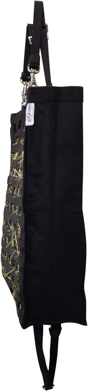 • Holds 2–3 flakes of hay – This 21"x7"x25" hay bag with 1.75" square openings holds approximately 2–3 flakes of timothy, orchard, alfalfa, or other types of hay. Designed for quick and easy stuffing with minimal mess.