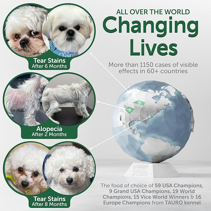 • Helps Reduce Brown Tear Stains: Designed to support saliva and tear composition, our dog food for allergies and itching helps maintain a clean muzzle and bright coat in white, light or mixed coats