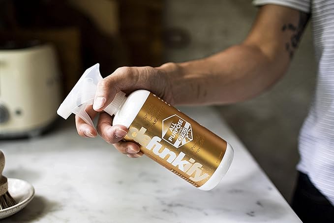 • 𝗦𝗽𝗿𝗮𝘆 𝘁𝗵𝗲 𝗙𝘂𝗻𝗸 𝗢𝗳𝗳!' 𝗚𝘂𝗮𝗿𝗮𝗻𝘁𝗲𝗲: Defunkify's All Purpose Cleaner is a concentrated degreaser that makes quick work of spills, grime & residue left behind by other surface cleaners. As a lightly scented 'Citrus' essential oil multi surface cleaner, w/ all natural odor & set-in stain remover ingredients, 𝘆𝗼𝘂𝗿 𝗵𝗮𝗿𝗱 𝘀𝘂𝗿𝗳𝗮𝗰𝗲𝘀 𝘄𝗶𝗹𝗹 𝗯𝗲 𝗹𝗼𝗼𝗸𝗶𝗻𝗴 & 𝘀𝗺𝗲𝗹𝗹𝗶𝗻𝗴 𝗹𝗶𝗸𝗲 𝗻𝗲𝘄 𝘄𝗶𝘁𝗵 𝗮 𝘀𝗶𝗻𝗴𝗹𝗲 𝗮𝗽𝗽𝗹𝗶𝗰𝗮𝘁𝗶𝗼𝗻, 𝗴𝘂𝗮𝗿𝗮𝗻𝘁𝗲𝗲𝗱.