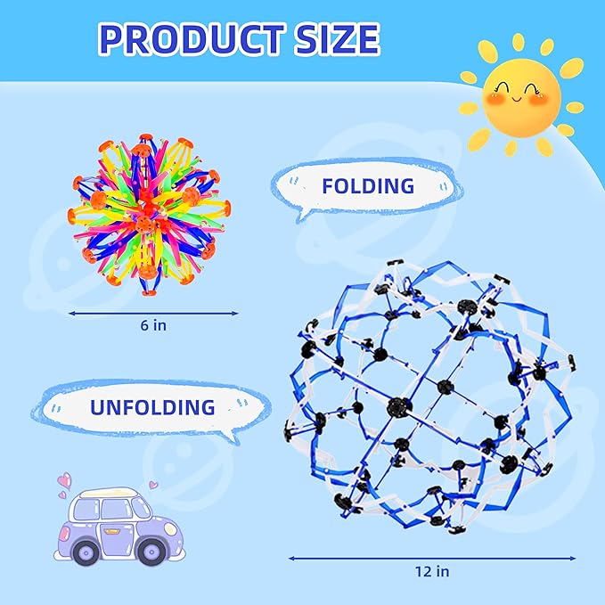 • Upgraded Expandable Ball Toy:Our AGSIXZLAN breathing ball expandable magic breathing ball,Made of high-quality ABS plastic,this collapsible ball toy,fidget toy is durable, flexible, and free of peculiar smells. With vibrant colors, it magically expands from 6" to 12" and shrinks back to its original size, offering endless sensory fun and stress relief