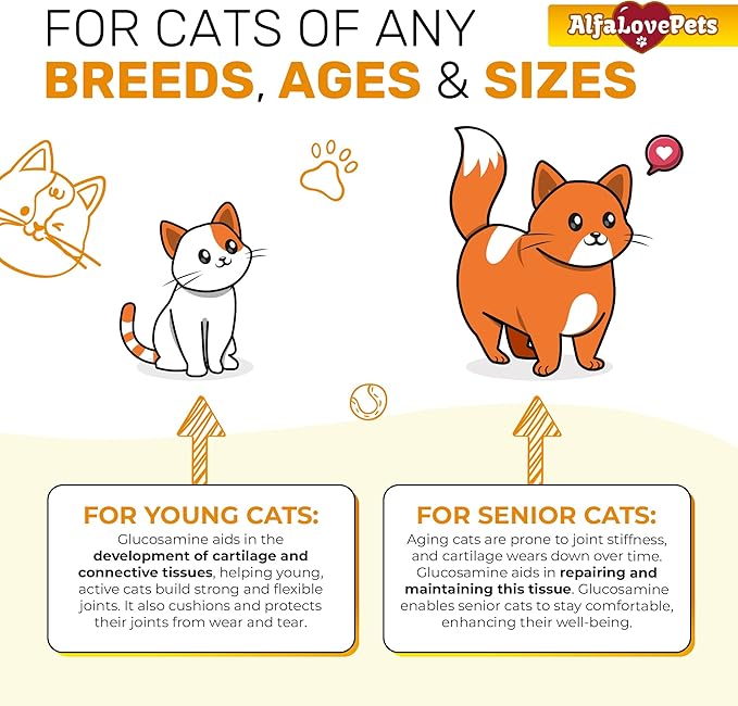 • 😻𝗣𝗲𝗿𝗳𝗲𝗰𝘁 𝗳𝗼𝗿 𝗖𝗮𝘁𝘀 - Alfa Love Pets Glucosamine Chondroitin for cats carefully formulated to enhance hip joint health and mobility in your cat.