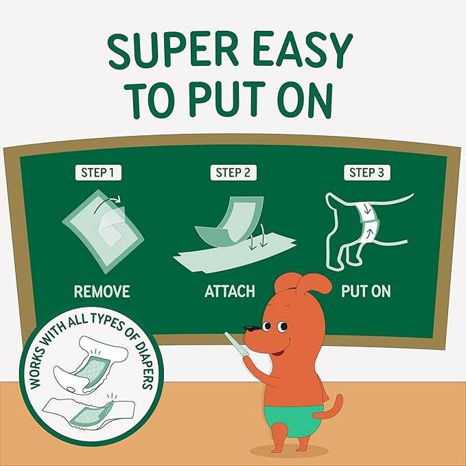 • Easy to Use in Just Seconds: Just peel and place inside your dog diaper, male wrap, or belly band. No mess, no hassle just quick and reliable protection.