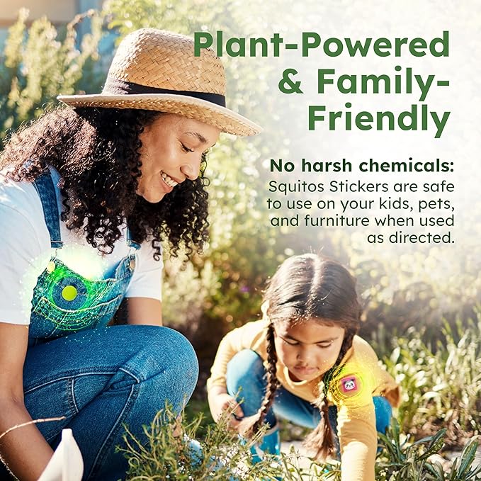 • Squito Stickers are our easy-to-use mosquito repellent patches that are essential-oil based and do not contain DEET or other harmful chemicals. It contains natural Citronella oil that effectively repels mosquitoes. Just stick to any surface such as your clothing, hats, bags, strollers, and more. Squito Stickers are perfect for pool days, camping, or any other outdoor and indoor activities.