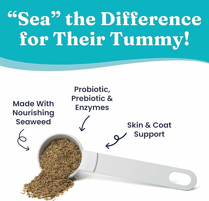 • Immune & Bowel Support – Powered by red, green & brown sea kelp, this dog probiotic supplement helps support immunity, nutrient absorption & bowel health. A great cat probiotic & dog probiotic for digestive health & cat constipation relief support