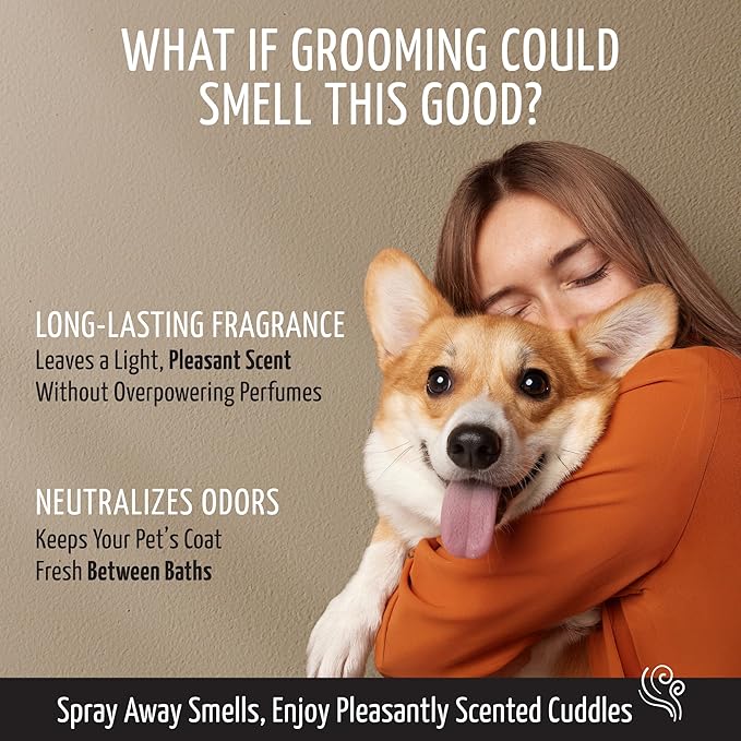 • Moisture-Locking, Deodorizing Leave-In Formula: Our lightweight, no-rinse dog conditioner hydrates dry coats while also eliminating odors and keeping your pet smelling fresh; making it perfect as a deodorizing grooming spray between dog baths