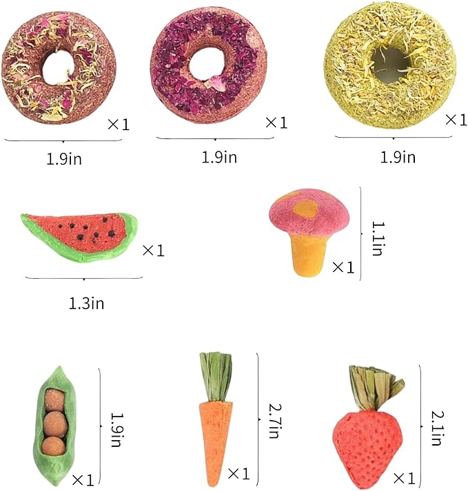 • [Versatile] These rabbit chewing toys can be hung in the cage with hooks and are suitable for rabbits, hamsters, guinea pigs, squirrels, chinchillas, and parrots, providing more fun for your pet.