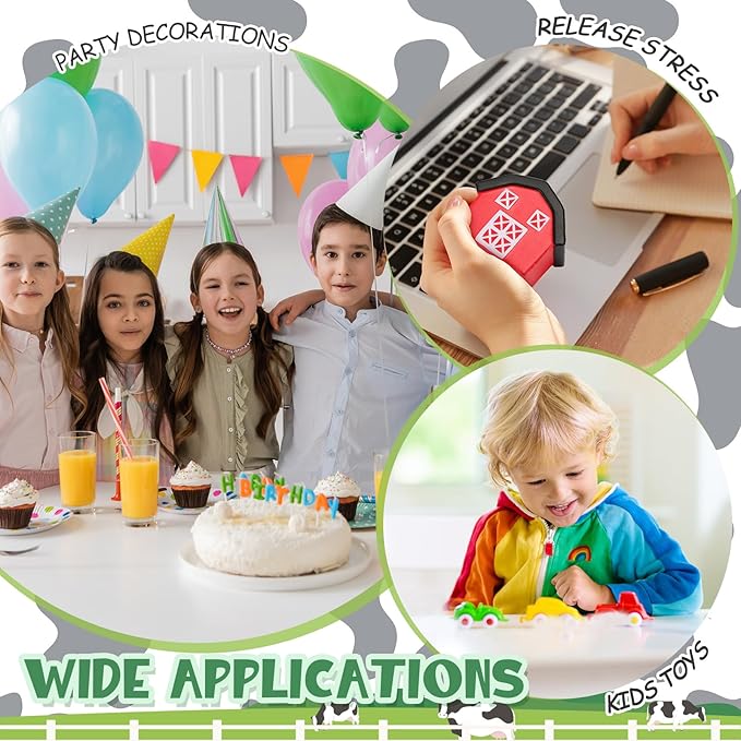 • Stress Relief and Interactive Fun: these farm animal squeezes are not just decorative; They also serve as a source of pleasure and stress relief for guests; Their fun design encourages interaction, farm animal toys are cute and compact, fun to press, stretch, or twist, allowing attendees to engage with the decorations; This feature adds an enjoyable element to the event, making it memorable for people involved