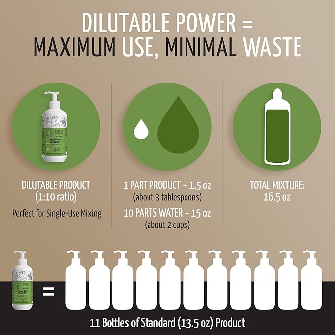 • Convenient Bottle for Effortless Use: Made in the EU; comes in manageable 13.5 fl oz size, dilutable 1:10; fits perfectly with your dog grooming and puppy essentials supplies, simplifying daily coat care and boosting pet supplies for a healthy, vibrant coat; must have dog shampoo or shampoo for cats
