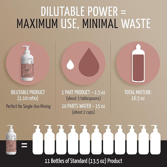 • Convenient Bottle for Effortless Use: Made in the EU; comes in a manageable 13.5 fl oz size bottle and is dilutable 1:10; fits perfectly with your dog grooming and puppy essentials supplies; simplifies daily coat care and enhances pet supplies for a healthy, vibrant coat; must-have dog shampoo or shampoo for cats