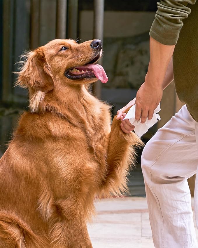 • Soft Pearl Cotton Wipes: Dog wipes for paw and butt are made of high-quality 100% biodegradable plant fiber, soft and skin-friendly, larger, thicker and more moist, easy to hold and use, even long-term use will not hurt your pet's fur. Pearl cotton textured wipes help improve cleaning power.