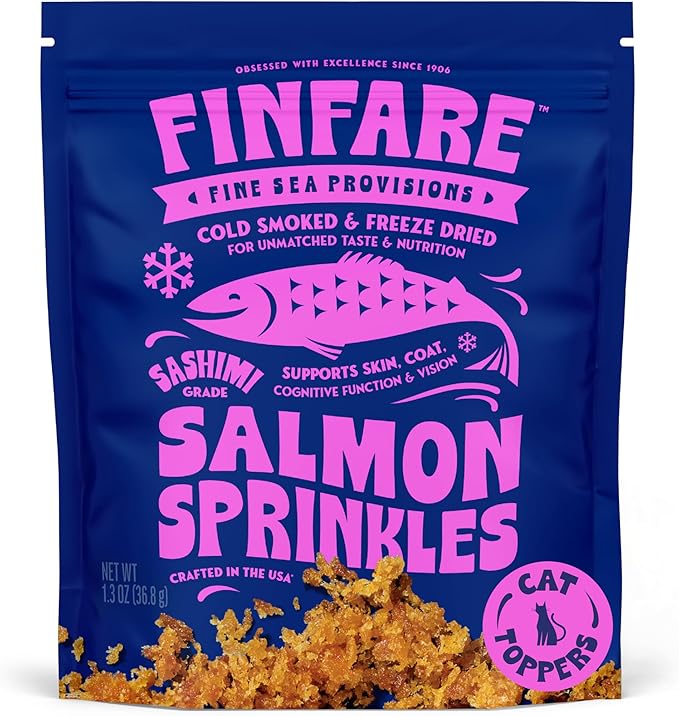 • CRUNCHY SALMON SPRINKLES FOR MEAL TOPPING: These freeze-dried flakes add texture, protein, and flavor to your cat’s meals. Great for encouraging better eating habits and enhancing daily nutrition.