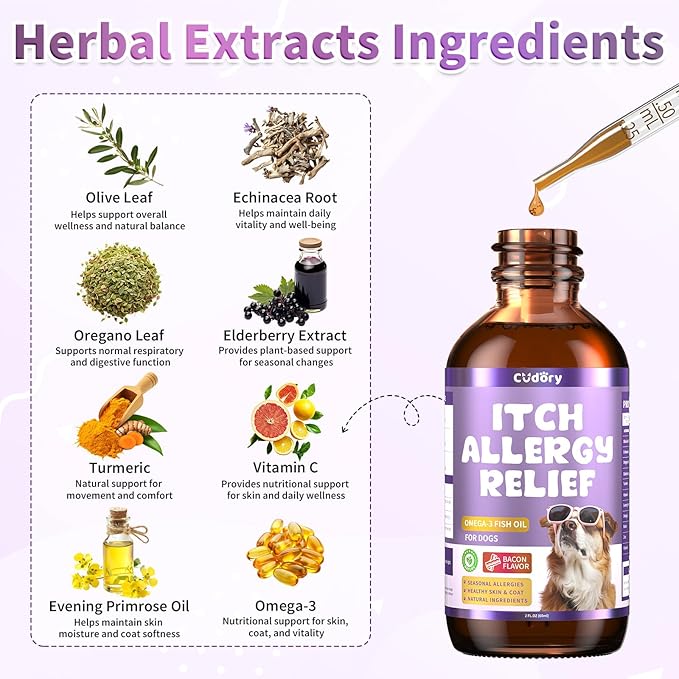• Easy to Use – Food Topper or Oral Drops: Simply add the allergy drops to your dog's food, treats, or administer directly by mouth. Designed for daily use to provide consistent support for your pet's wellness.