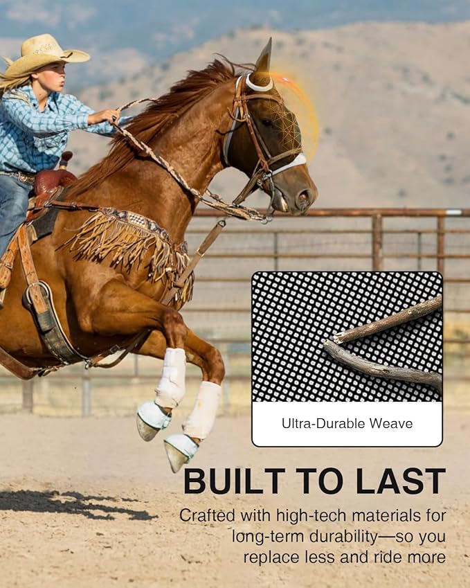 • DURABLE CONSTRUCTION: Tired of frequently replacing torn masks? The Hilltown horse fly masks are crafted from durable Teslin mesh. Just hose it down, and it’s ready season after season. Your horse stays protected—and you save both time and money