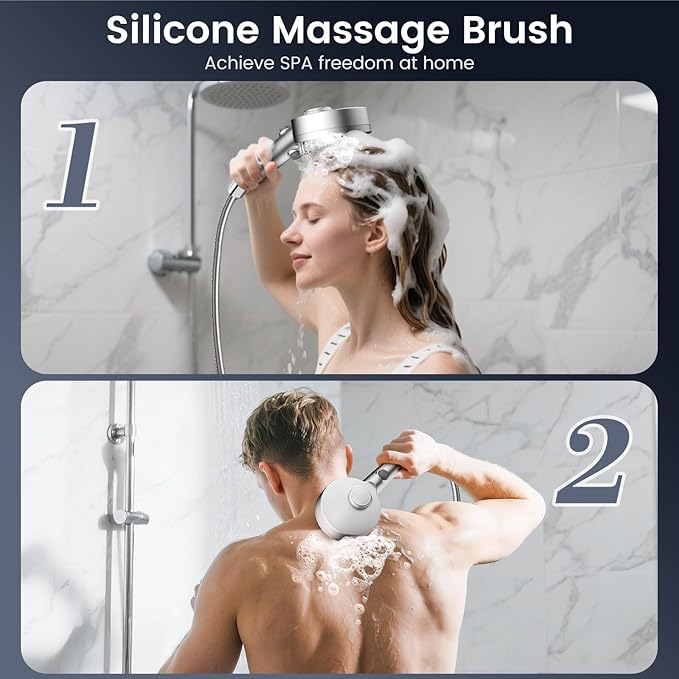 • Advanced Water Purification & Skin Protection: Experience healthier showers with our multi-layer filtration system featuring premium KDF and Maifan Stone VC balls. Effectively removes chlorine, heavy metals (lead, mercury, nickel, chromium), and impurities while retaining skin-friendly minerals. Ideal for sensitive skin care, this filtered shower head reduces dryness/itchiness, making it perfect for families with elderly, women, and children seeking chemical-free bathing.To avoid purchasing the incorrect replacement filter cartridge, please purchase the filter element link in the store: B0CPV542QG.