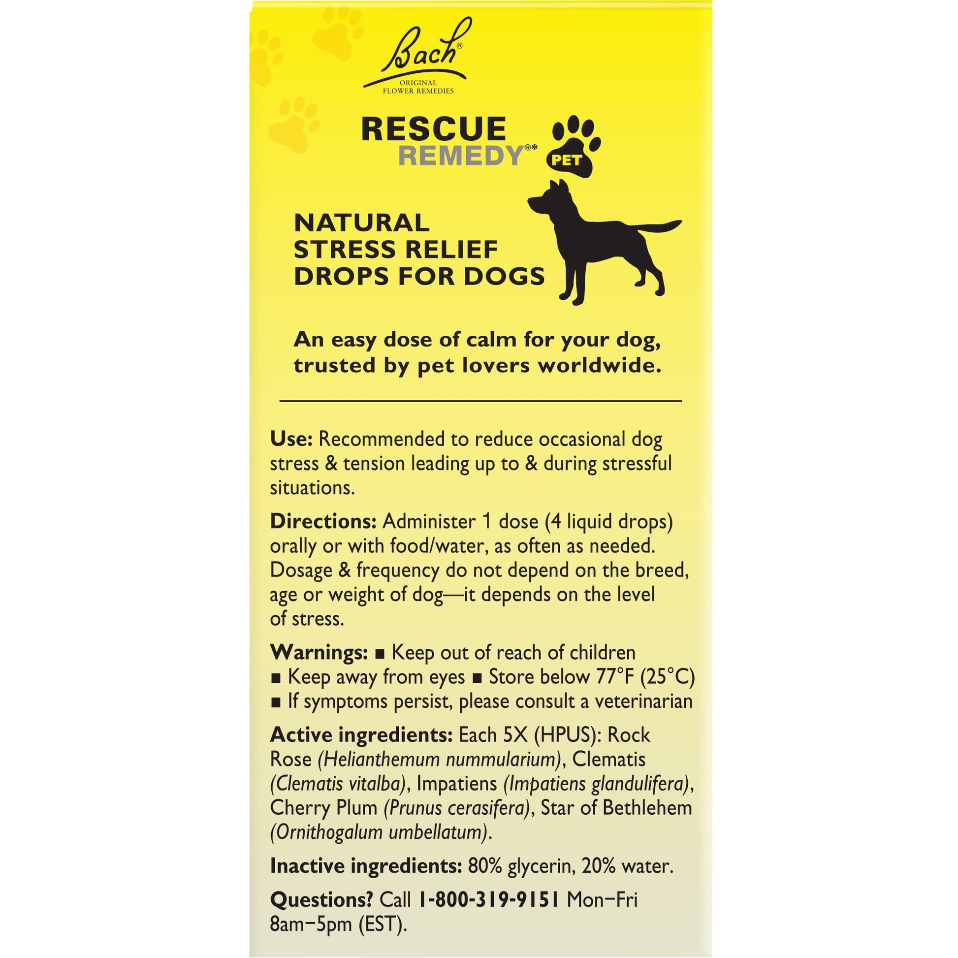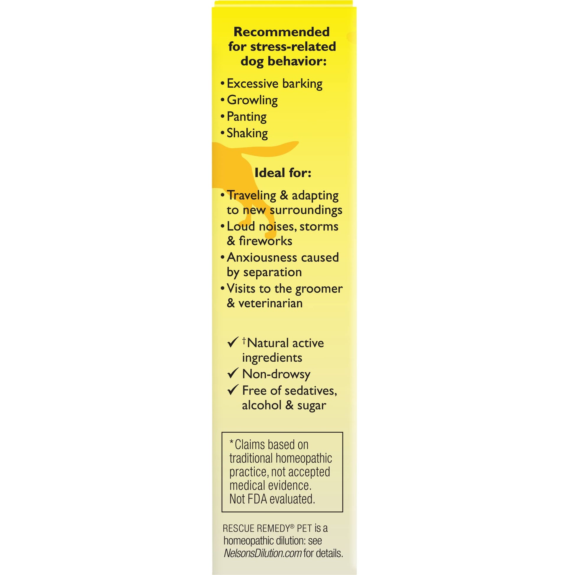 Details: Bach RESCUE REMEDY PET Dropper for Dogs 20mL: Natural Stress Relief & Calming Aid. The original Rescue Remedy Pet formula in new, custom designed packaging just for dog parents! Helps reduce stress-related dog behavior and tension caused by separation, change in routine or environment, visits to the groomer or vet, thunder, fireworks, kennel stays & more. Claims based on traditional homeopathic practice, not accepted medical evidence. Not FDA evaluated. Individual results may vary.