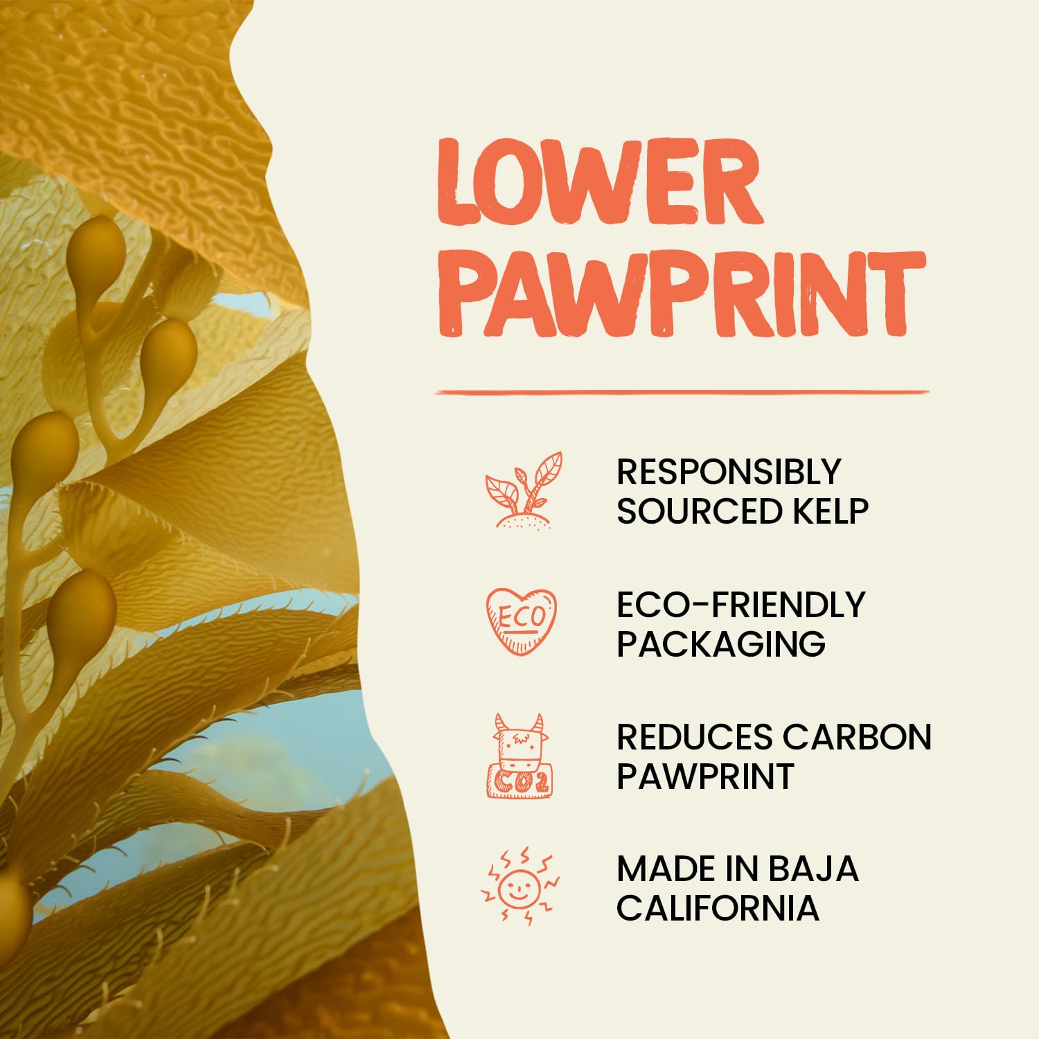 - Eco-Friendly: We care about the planet as much as you do. Our kelp is sourced responsibly from Baja California, and our eco-friendly green packaging is not only compostable but also reduces your carbon pawprint.